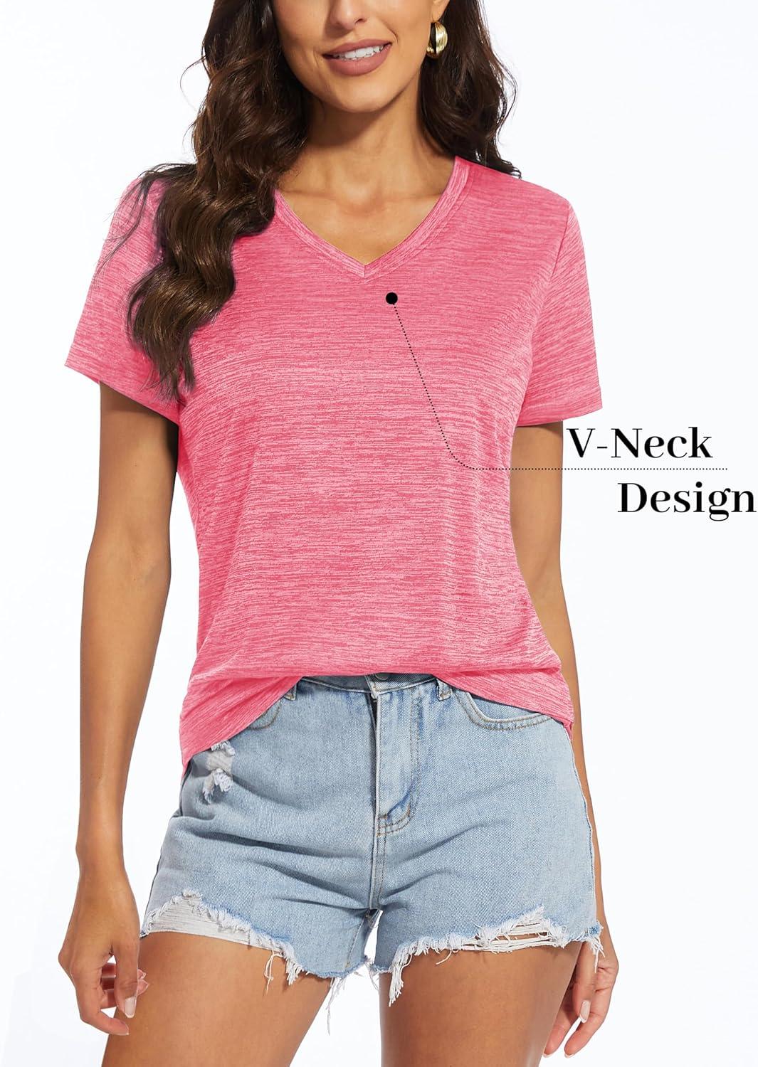 MAGCOMSEN Women’s T Shirts V-Neck Short Sleeve UPF 50+ Sun Protection Performance Quick Dry Athletic Shirts Tee Tops(Pink)