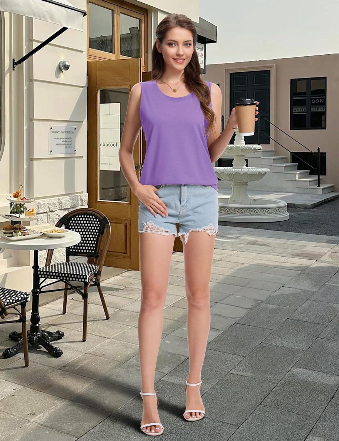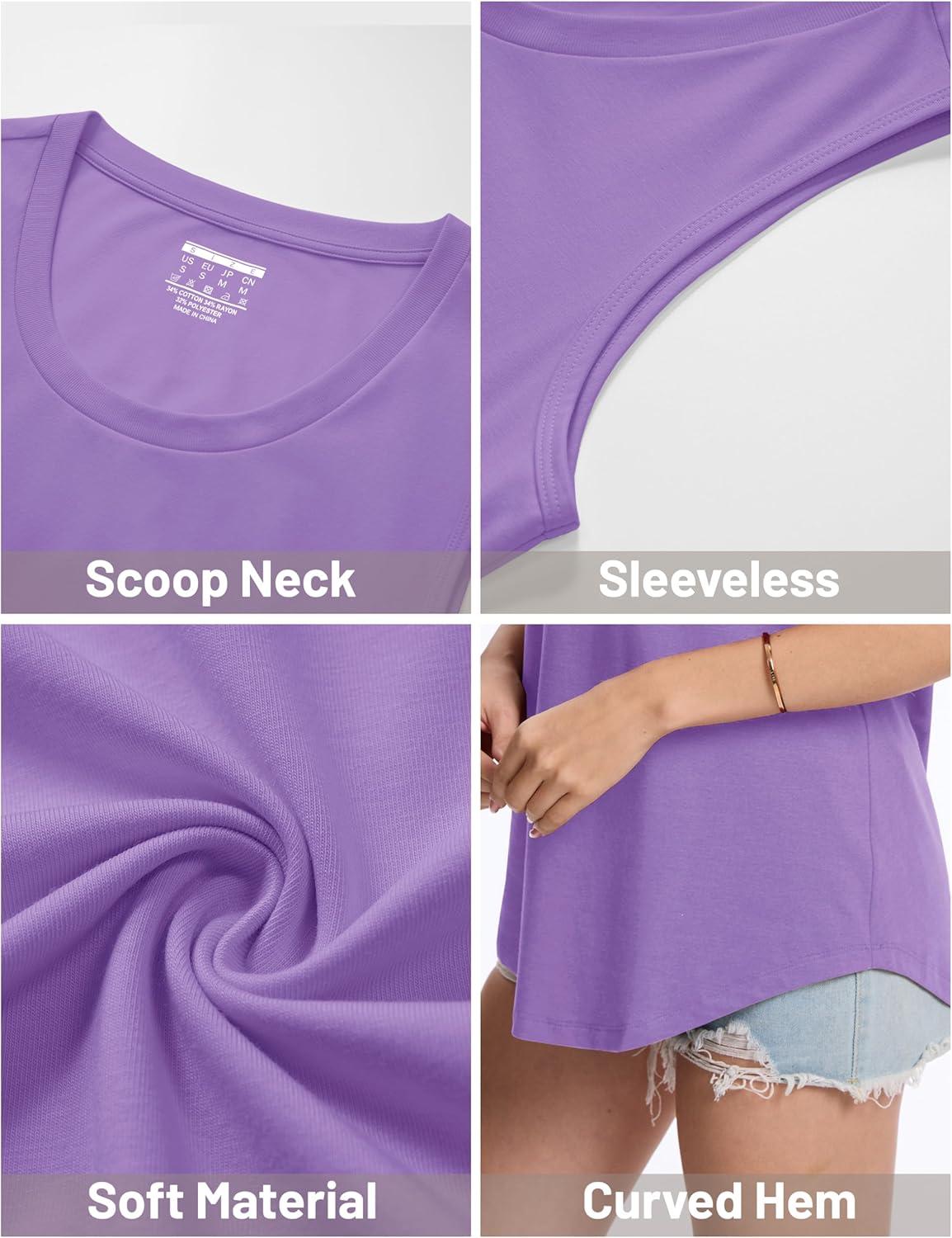 MAGCOMSEN Womens Tank Tops Loose Fit Sleeveless Top Casual Scoop Neck Tunic Shirts Summer UPF 50+ Basic Tshirt(Light Purple)