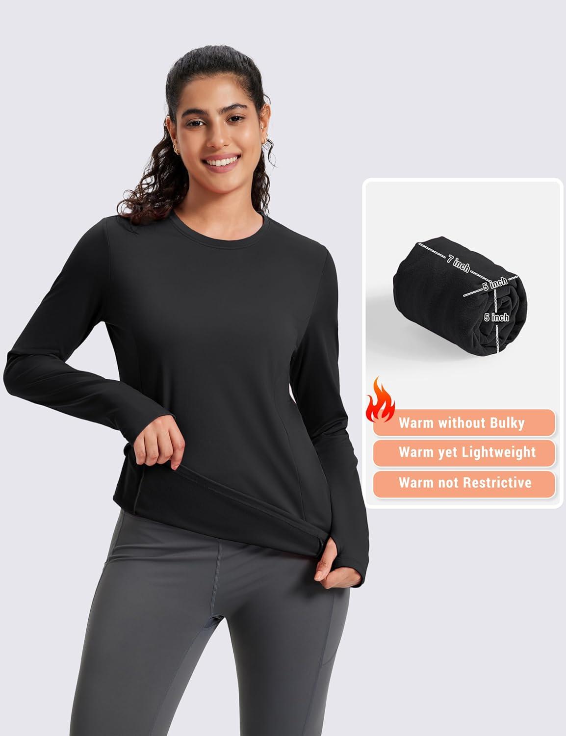 MAGCOMSEN Women’s Thermal Shirts Long Sleeve Fleece Lined Shirt Workout Tops Athletic Base Layer Running Hiking Winter(Black)