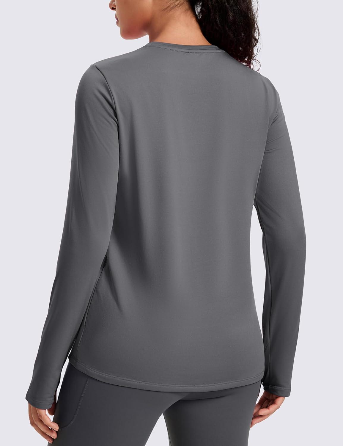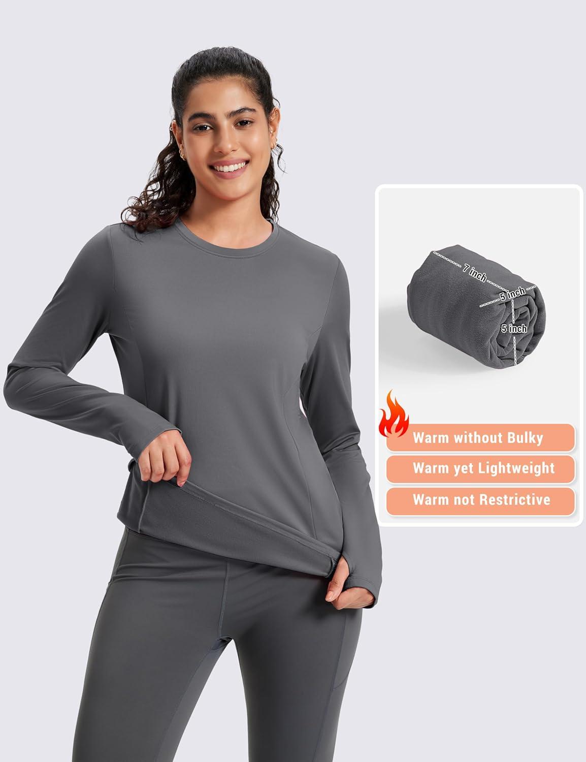MAGCOMSEN Women’s Thermal Shirts Long Sleeve Fleece Lined Shirt Workout Tops Athletic Base Layer Running Hiking Winter(Dark Grey)
