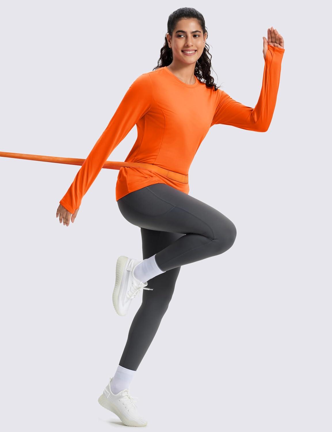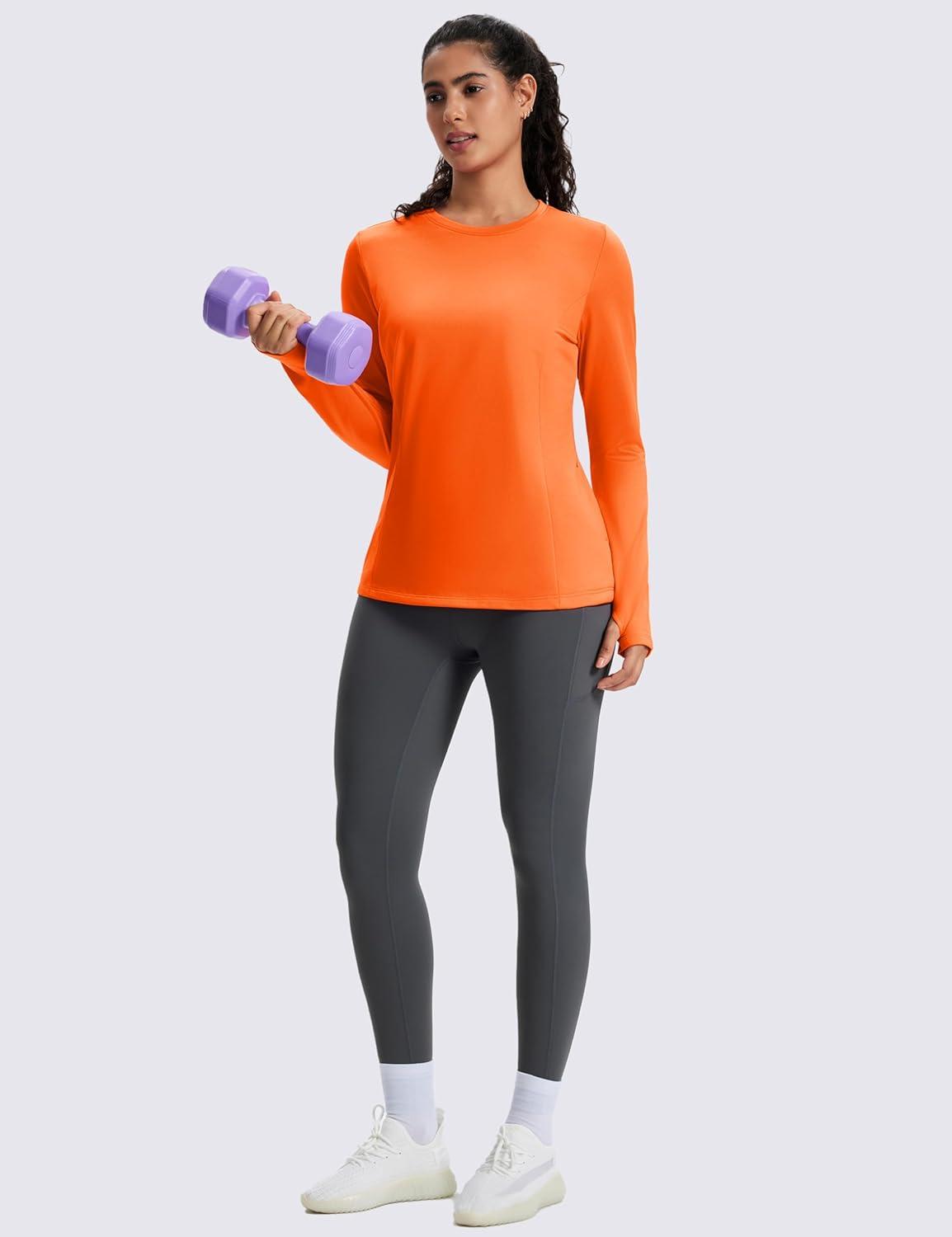 MAGCOMSEN Women’s Thermal Shirts Long Sleeve Fleece Lined Shirt Workout Tops Athletic Base Layer Running Hiking Winter(Orange)