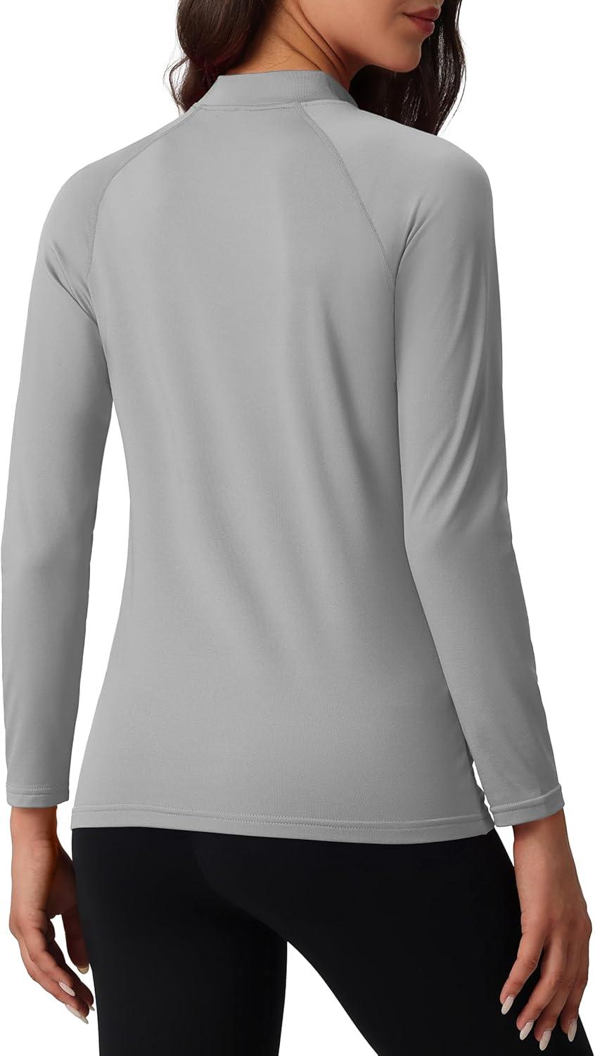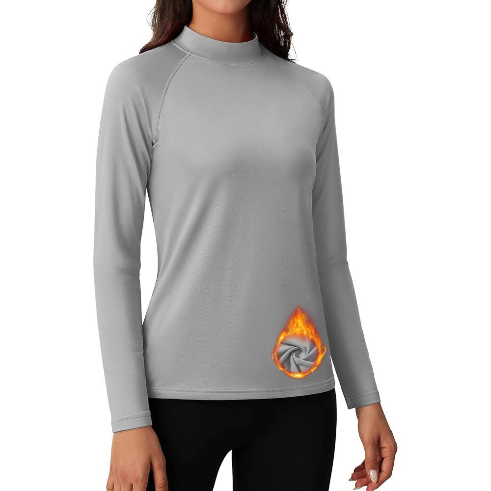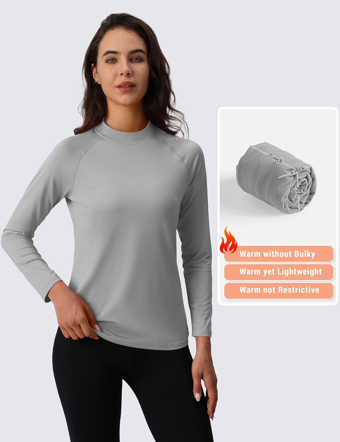 MAGCOMSEN Women’s Thermal Shirts Mock Turtleneck Fleece Lined Long Sleeve Workout Tops Underwear Base Layer Running(Light Grey)