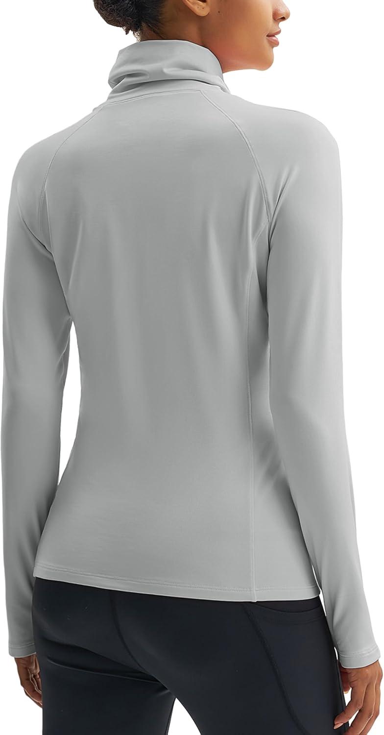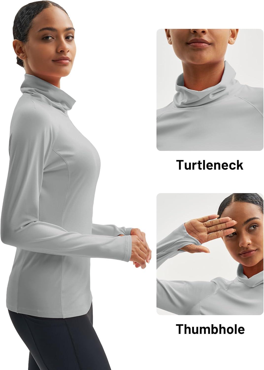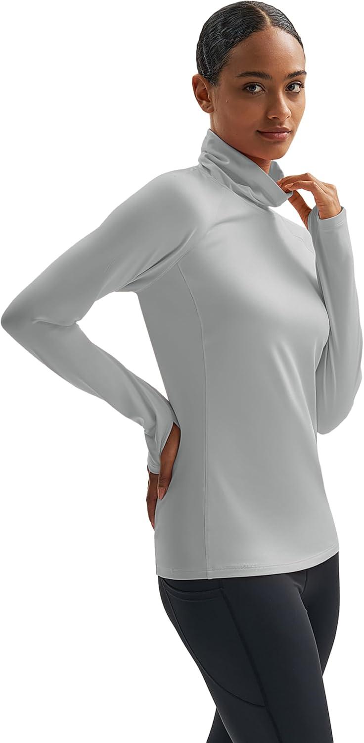 MAGCOMSEN Women’s Thermal Shirts Mock Turtleneck Long Sleeve Undershirt Fleece Base Layer Top with Thumb Holes(Lightgrey)