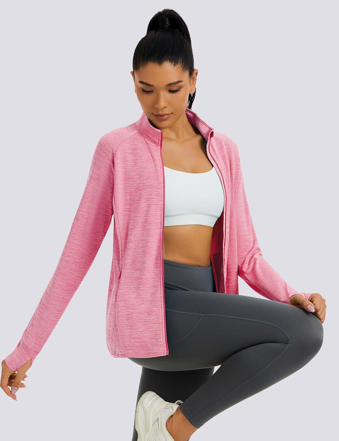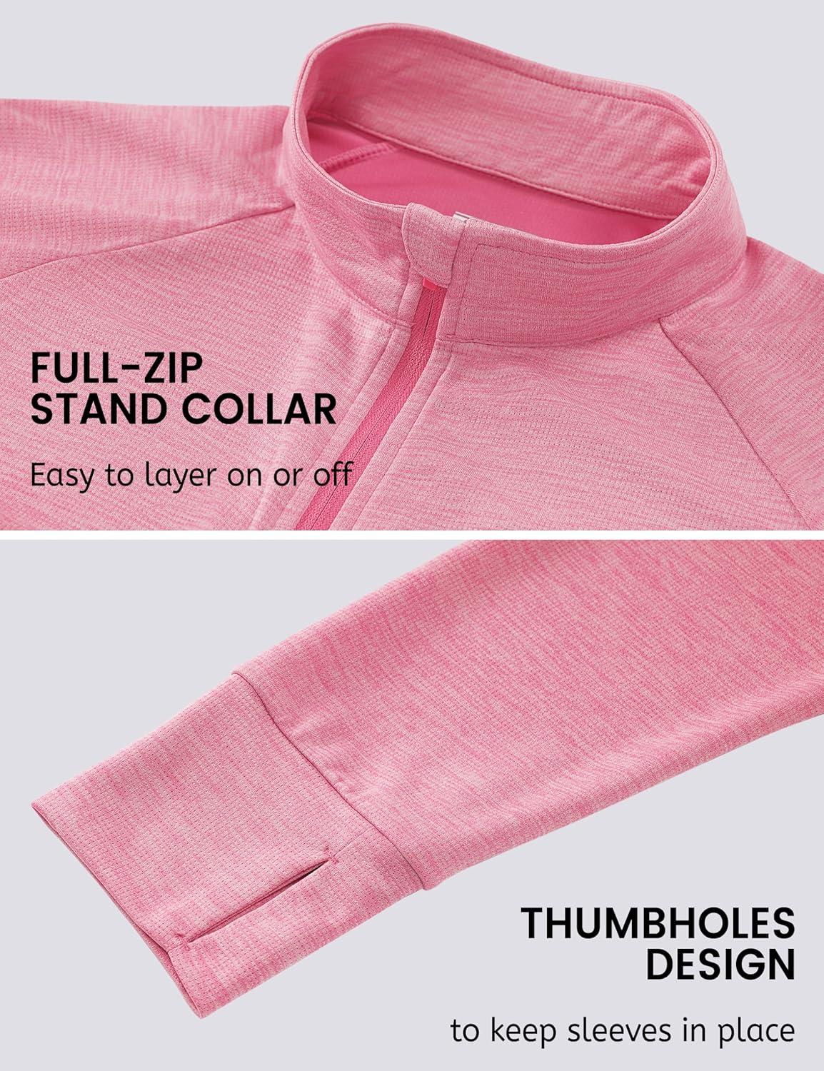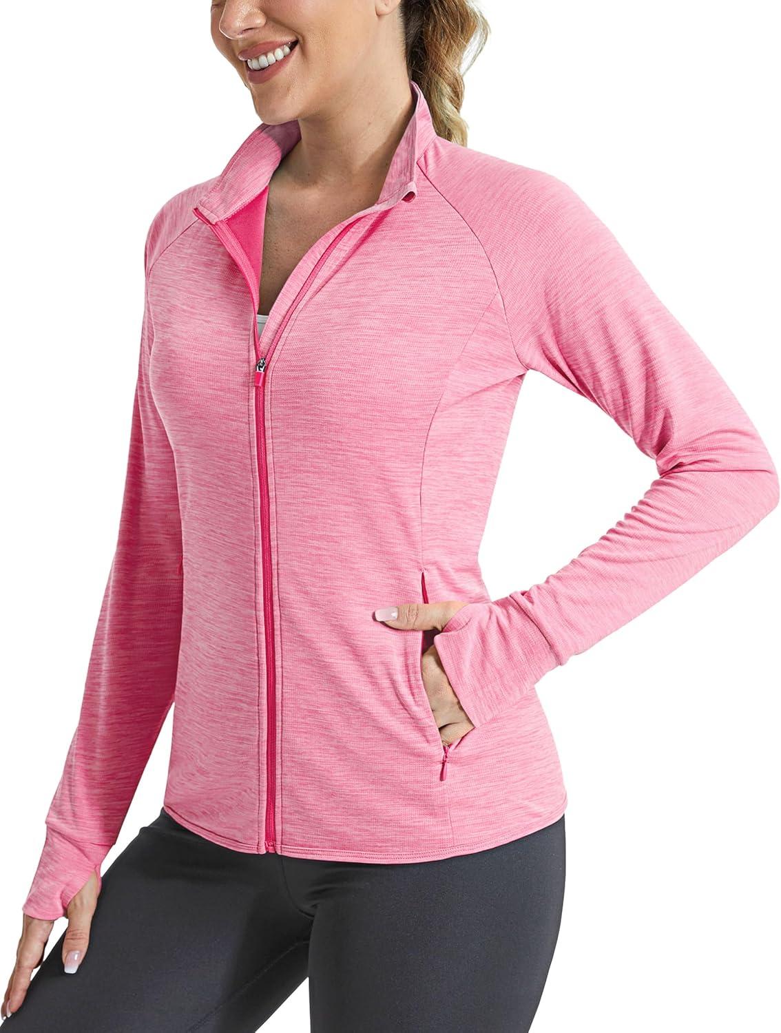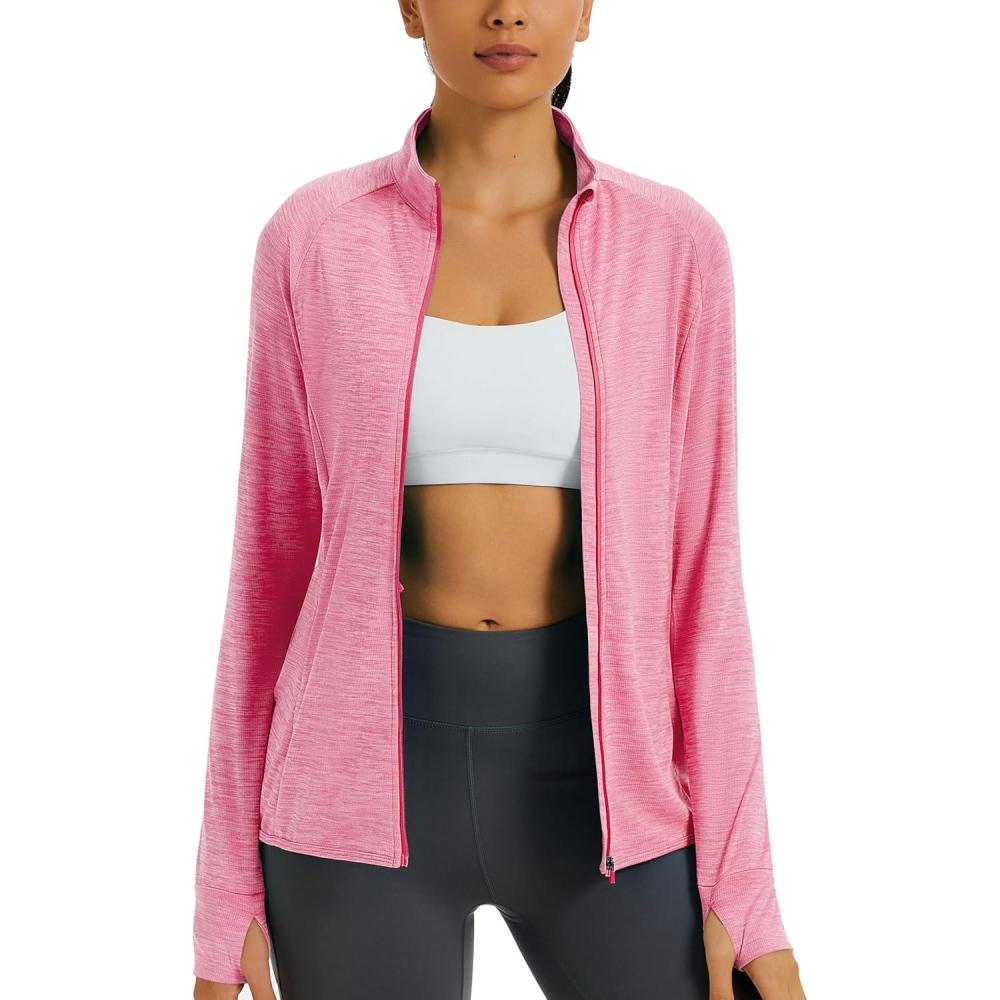 MAGCOMSEN Women’s UPF 50+ Athletic Jackets Full Zip Lightweight Workout Jacket SPF Sun Protection Shirts Hiking Running(Pink)