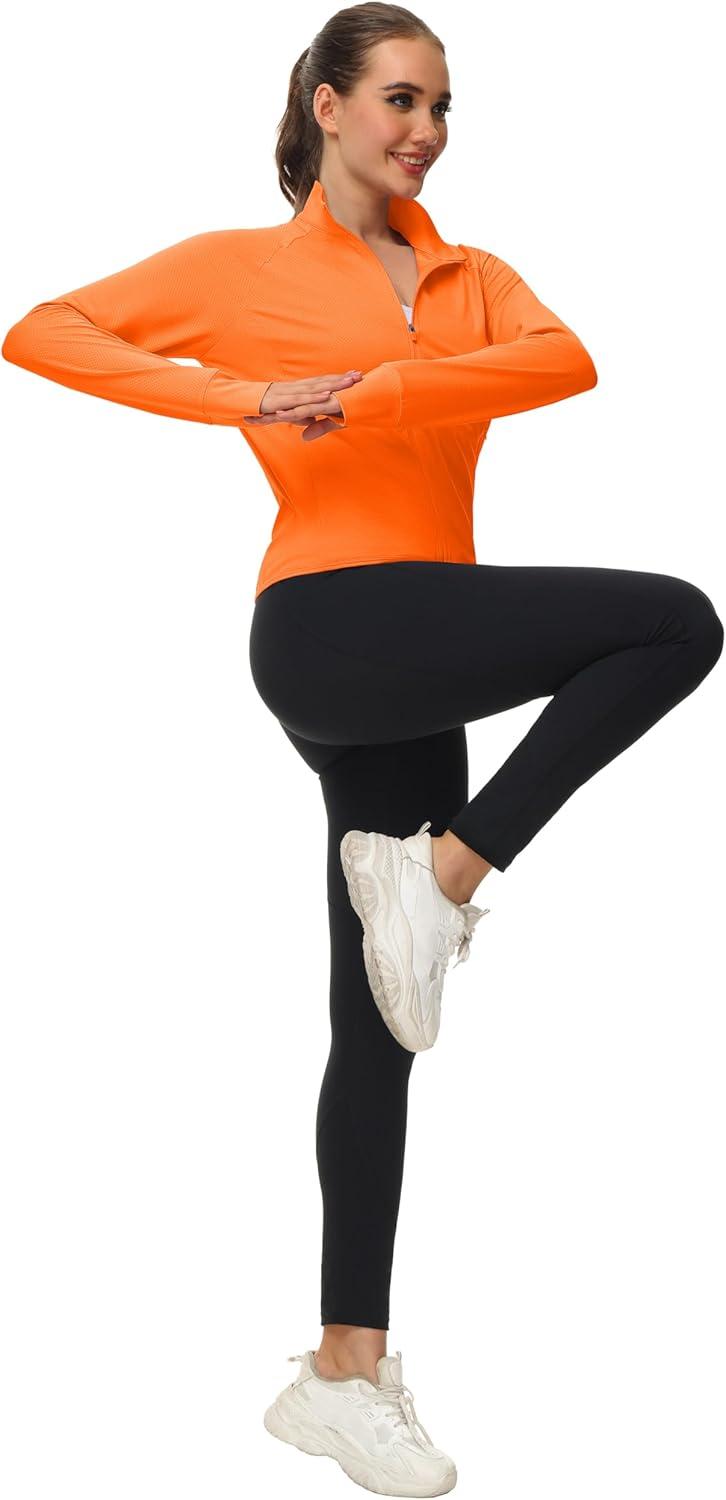 MAGCOMSEN Women’s UPF 50+ Lightweight Zip Up Jackets Cropped Athletic Workout UV Protection Sun Shirt Running(Orange)