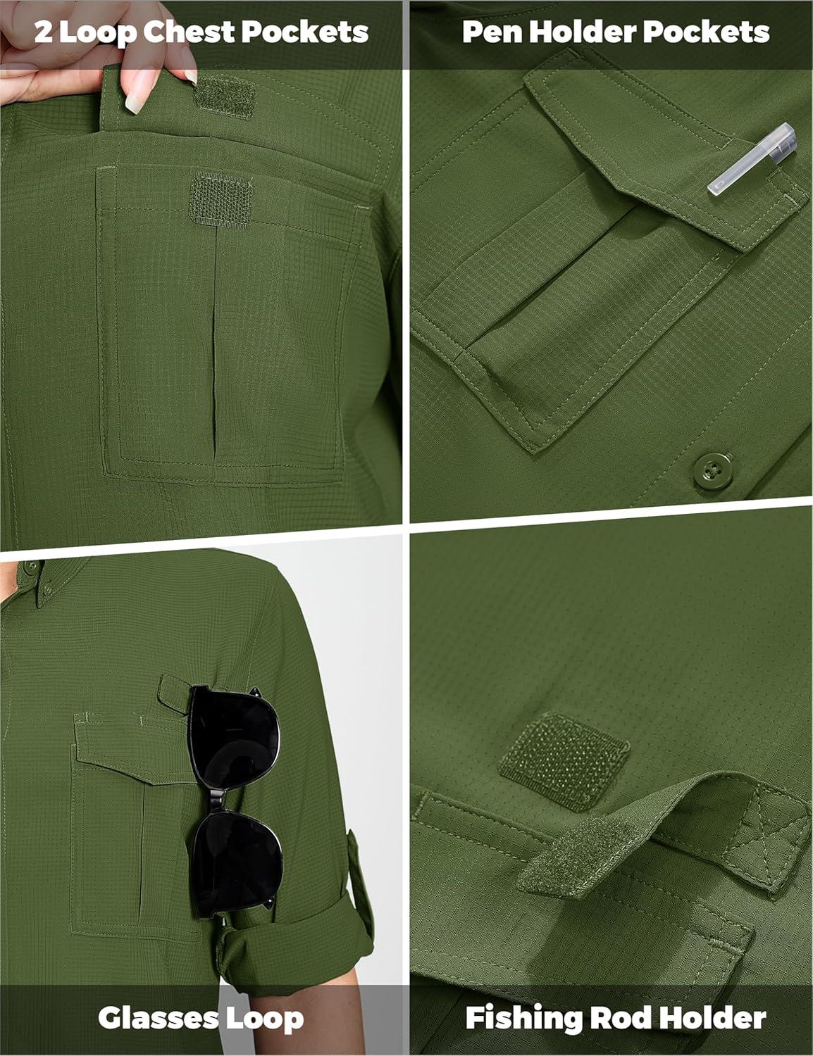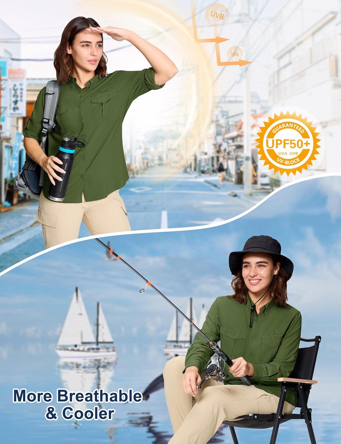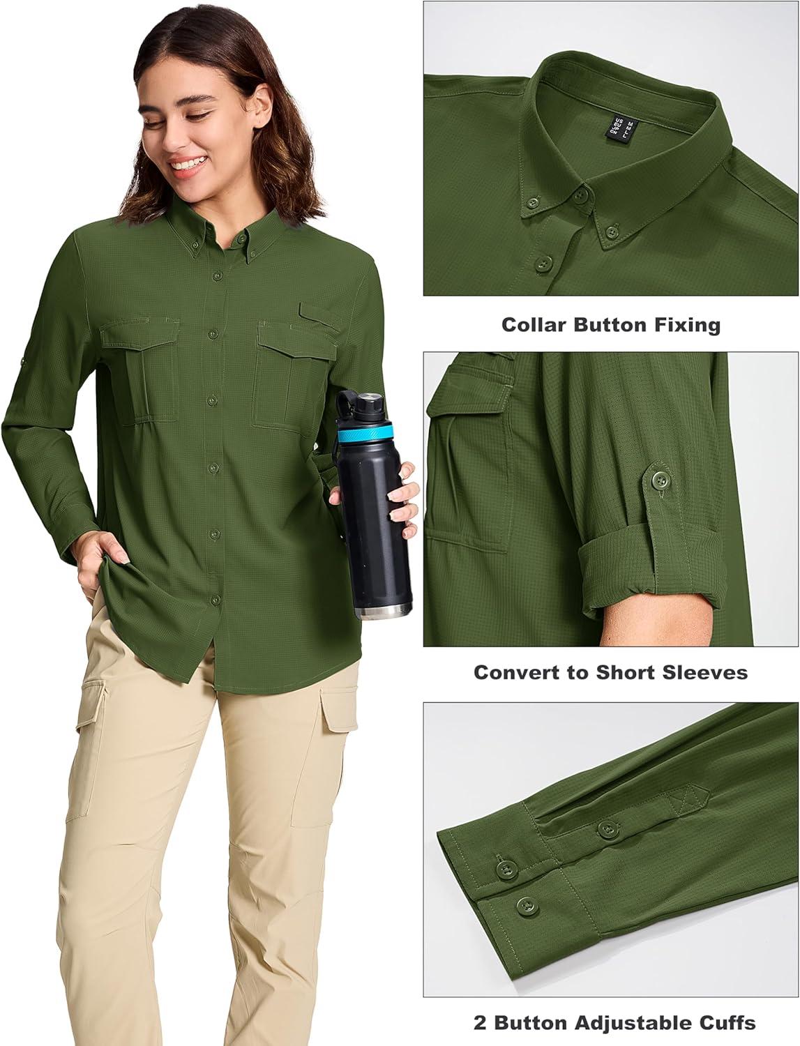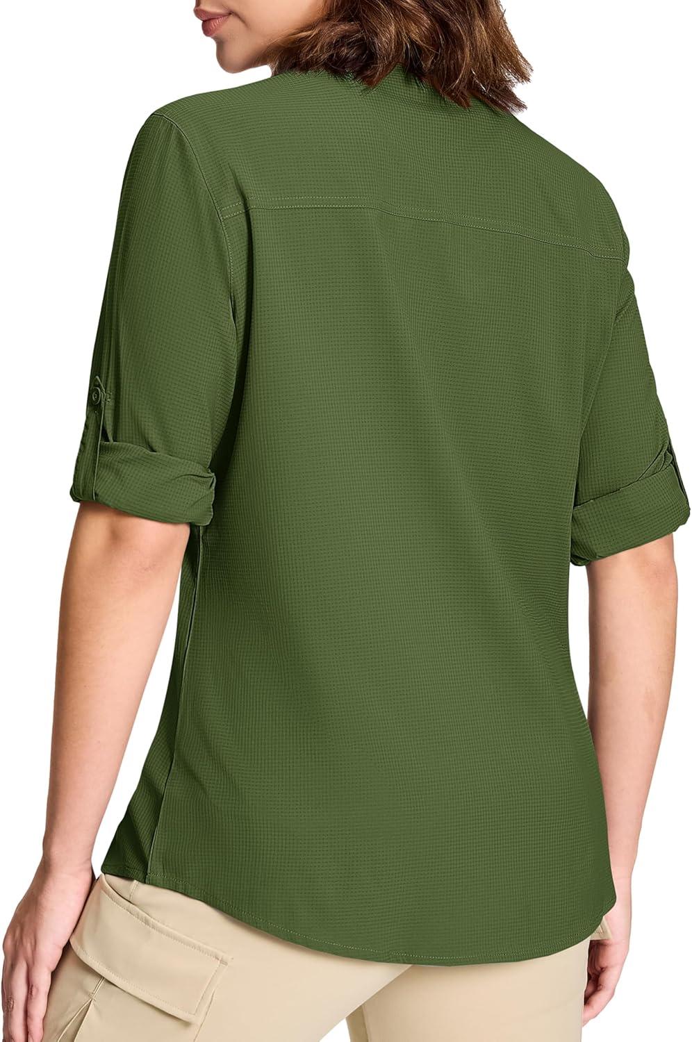 MAGCOMSEN Women’s UPF 50+ Long Sleeve Fishing Shirts UV Sun Protection Quick Dry Button Down Safari Hiking Travel Shirts(Armygreen)