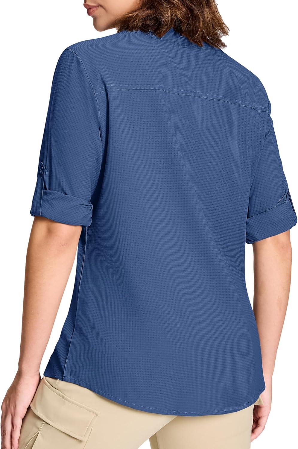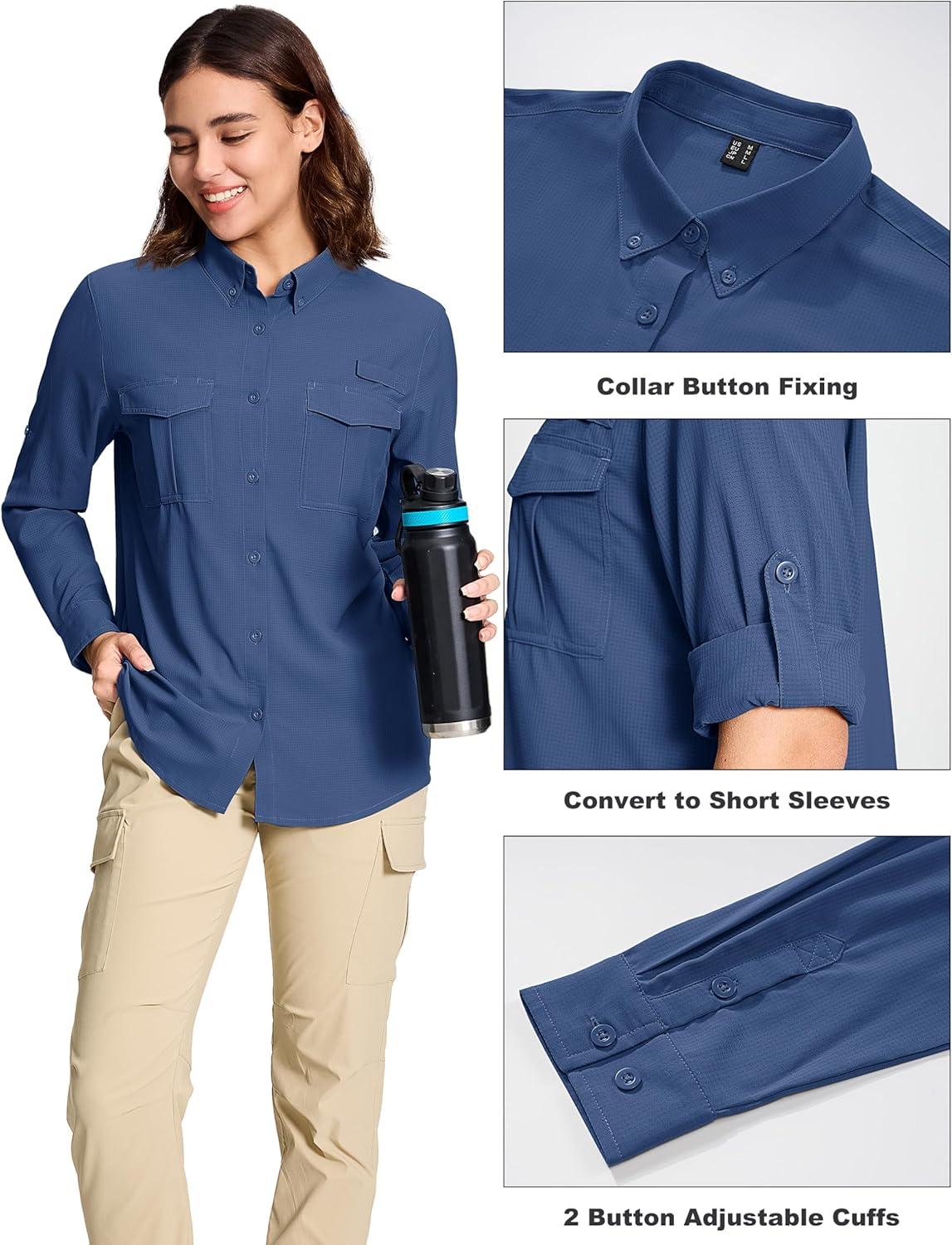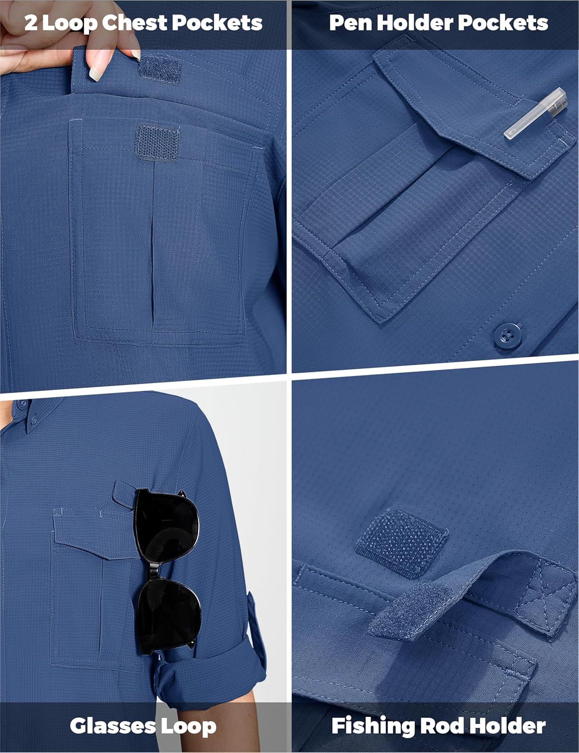 MAGCOMSEN Women’s UPF 50+ Long Sleeve Fishing Shirts UV Sun Protection Quick Dry Button Down Safari Hiking Travel Shirts(Bluegray)