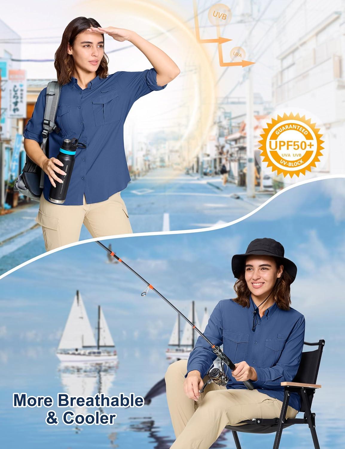 MAGCOMSEN Women’s UPF 50+ Long Sleeve Fishing Shirts UV Sun Protection Quick Dry Button Down Safari Hiking Travel Shirts(Navy)