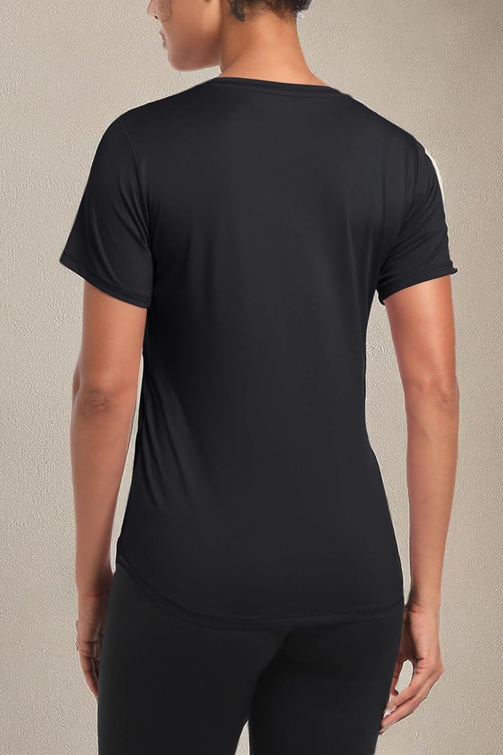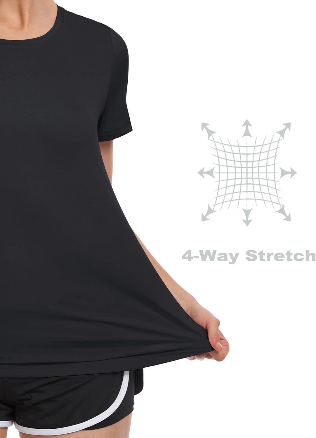 MAGCOMSEN Women’s UPF 80+ Short Sleeve T-Shirts Moisture Wicking Quick Dry Athletic Workout Rash Guard Tops(Black)