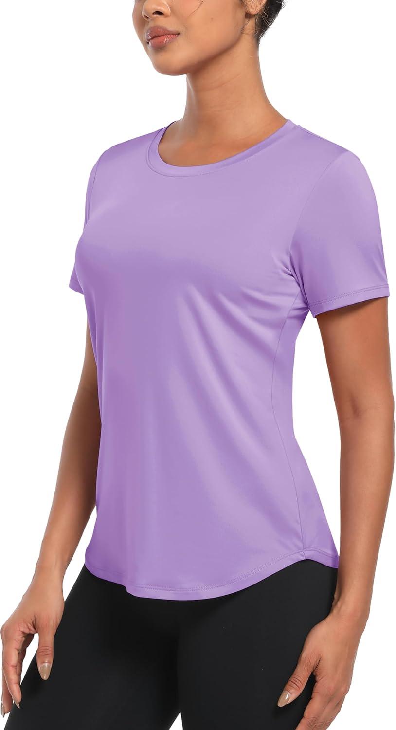 MAGCOMSEN Women’s UPF 80+ Short Sleeve T-Shirts Moisture Wicking Quick Dry Athletic Workout Rash Guard Tops(L Purple)