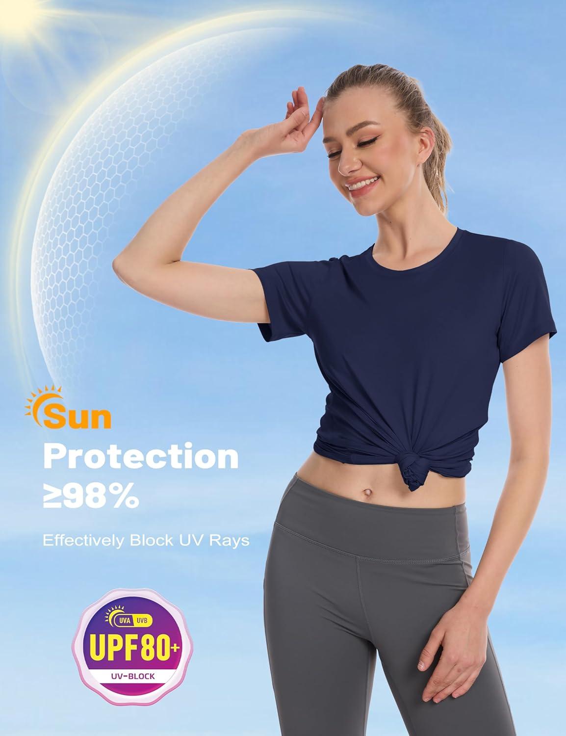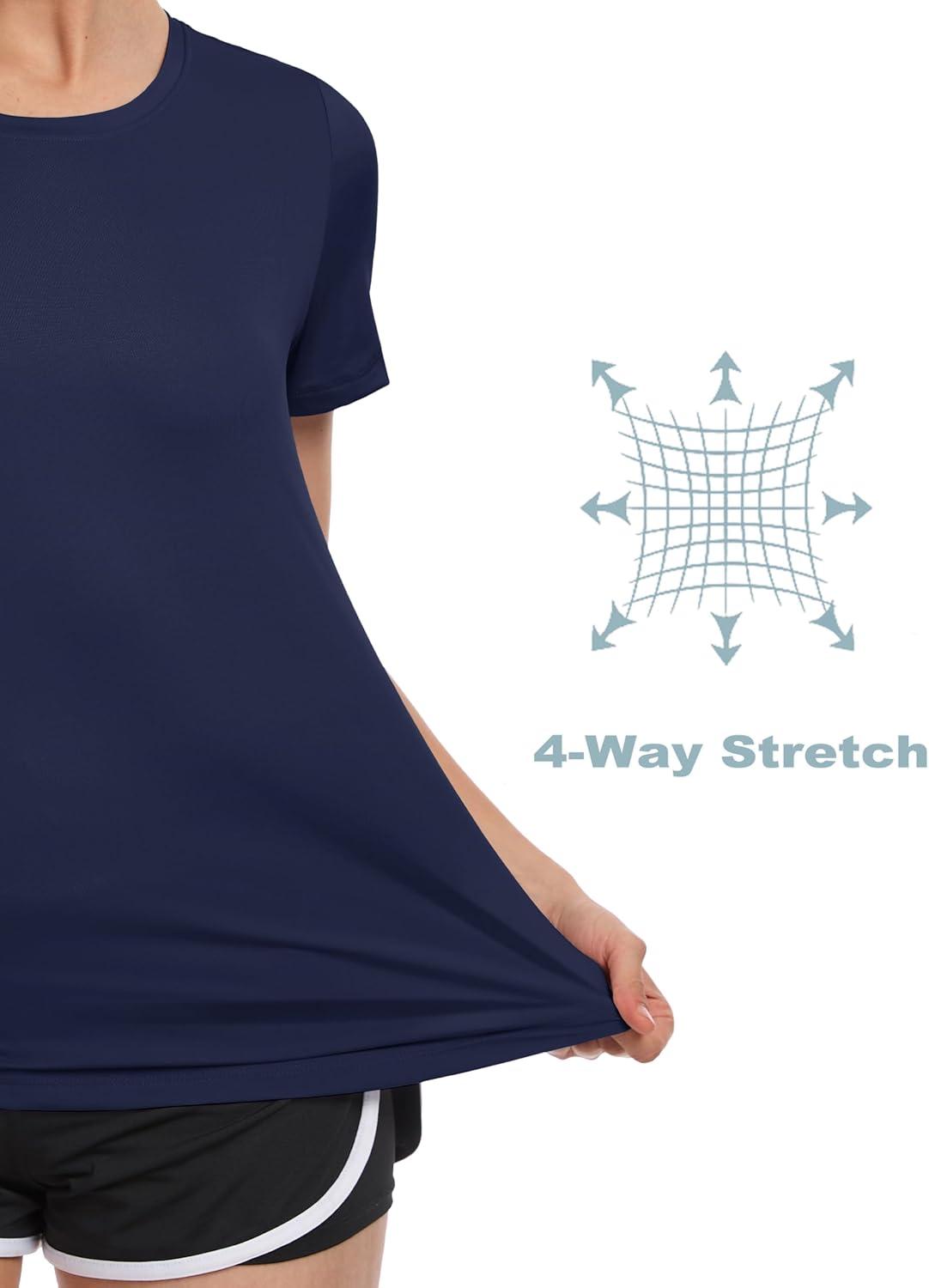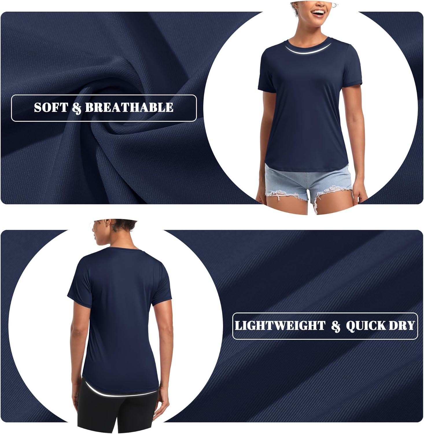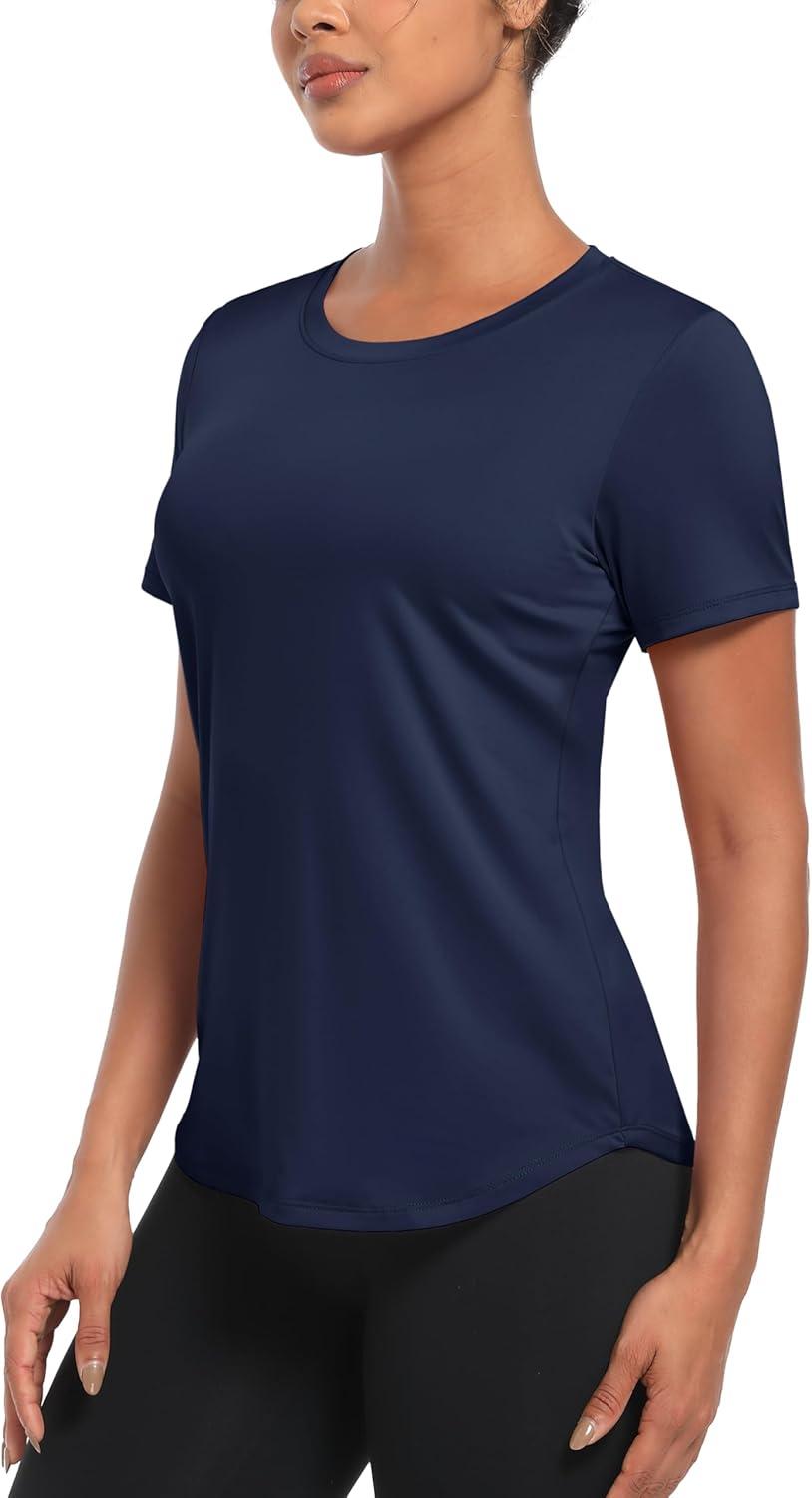 MAGCOMSEN Women’s UPF 80+ Short Sleeve T-Shirts Moisture Wicking Quick Dry Athletic Workout Rash Guard Tops(Navy)