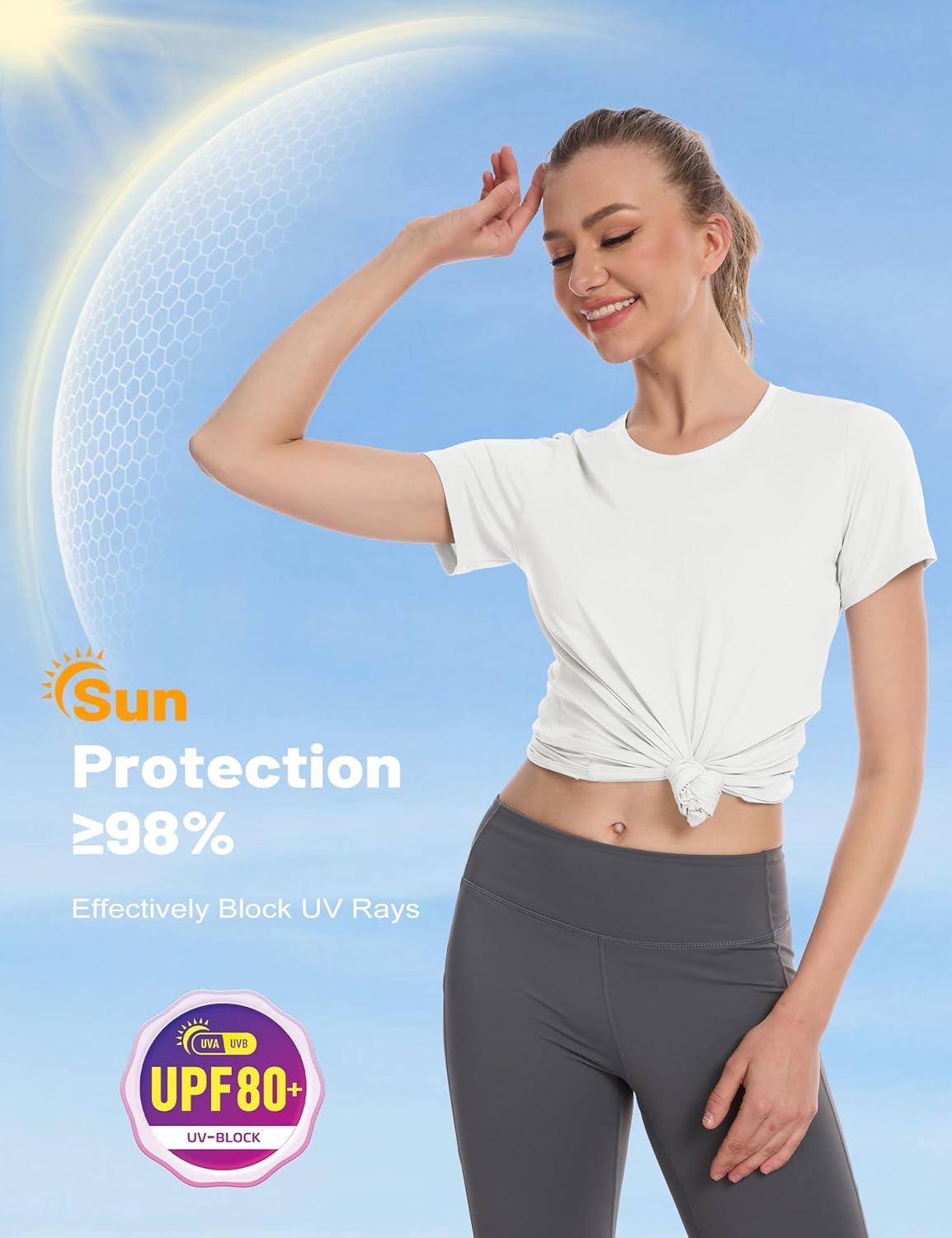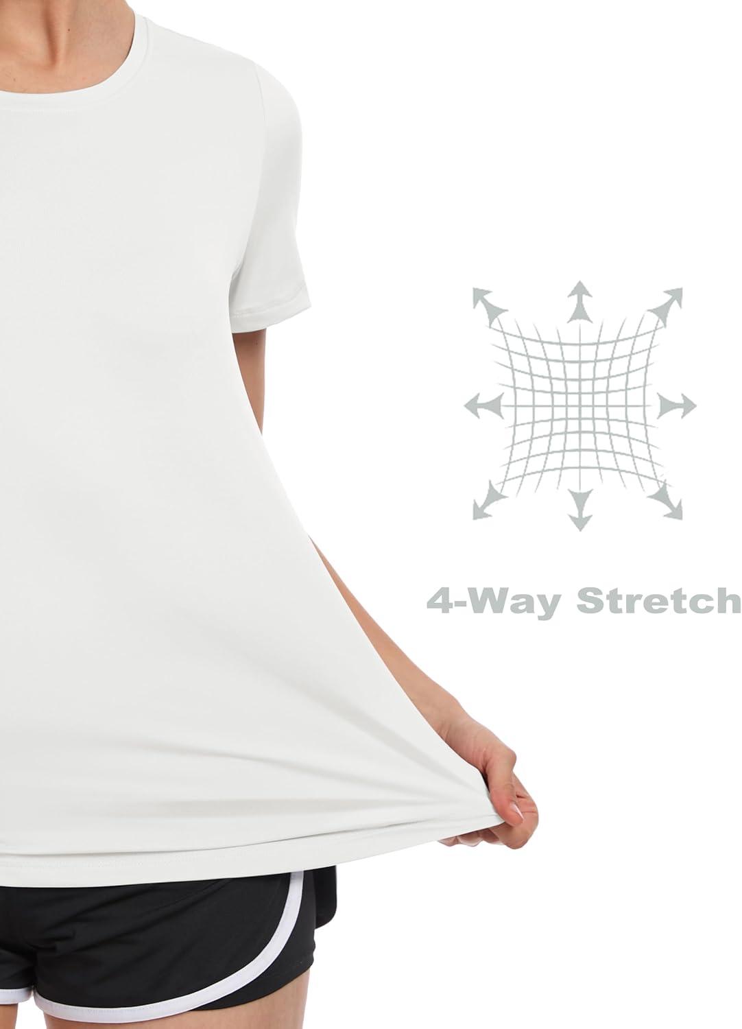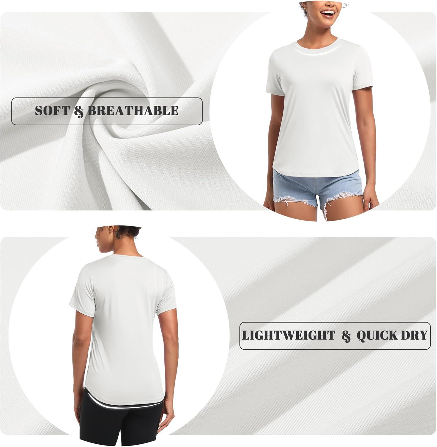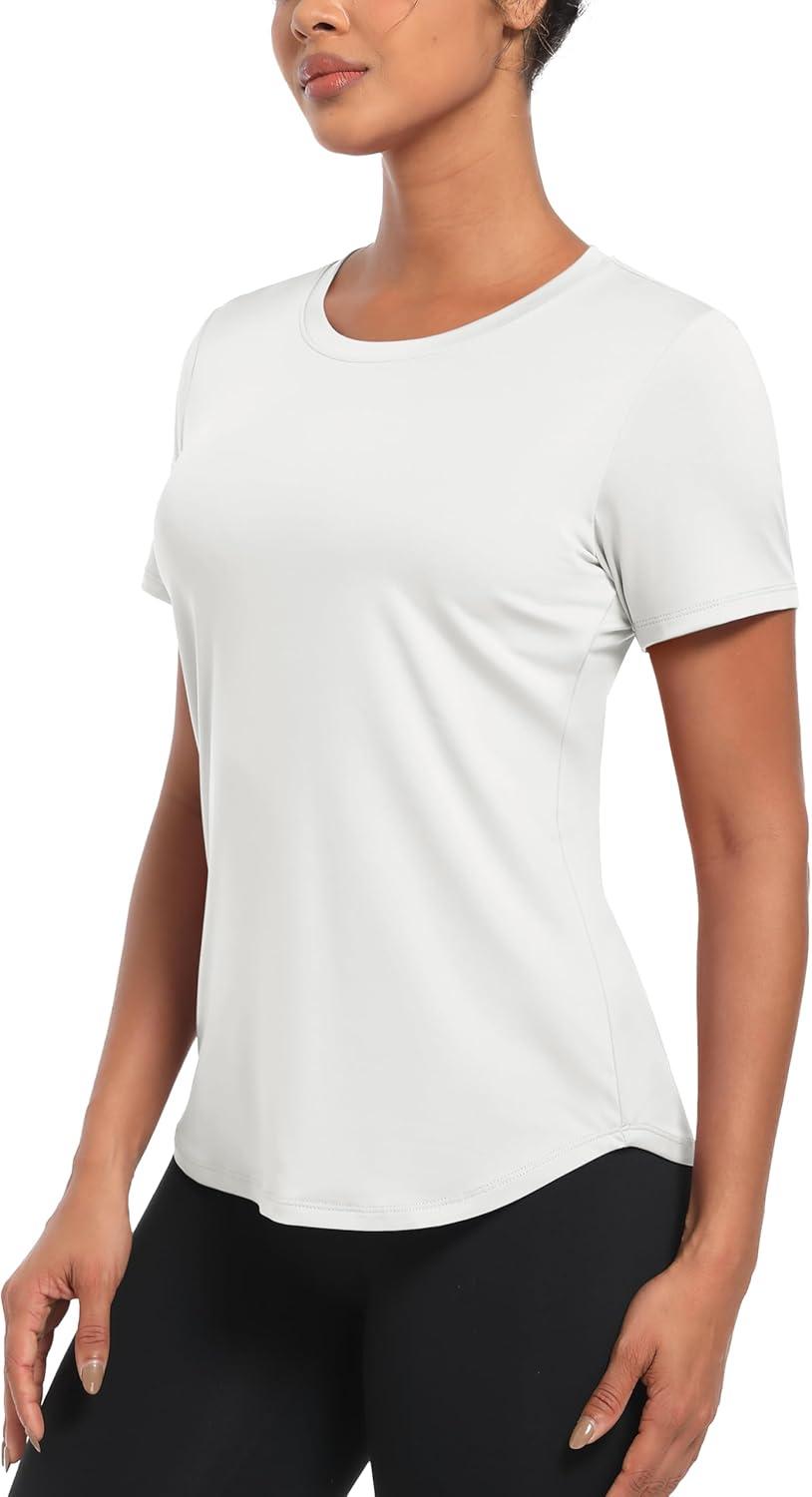 MAGCOMSEN Women’s UPF 80+ Short Sleeve T-Shirts Moisture Wicking Quick Dry Athletic Workout Rash Guard Tops(White)