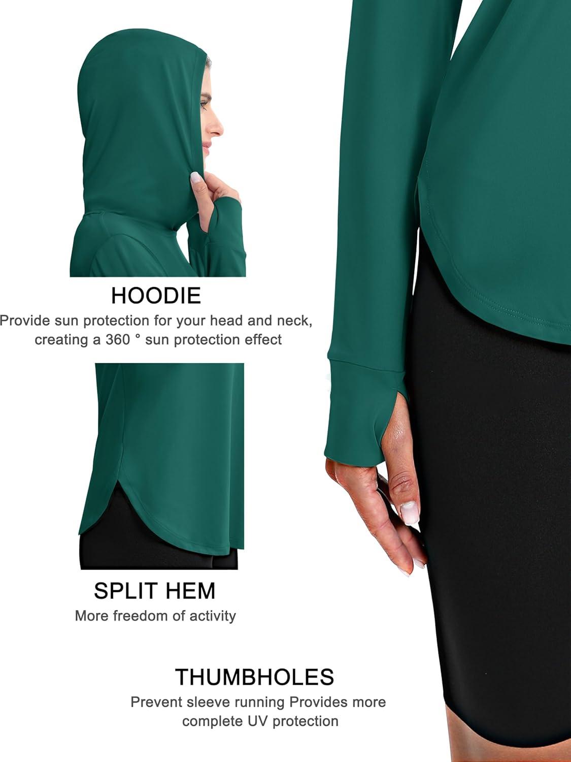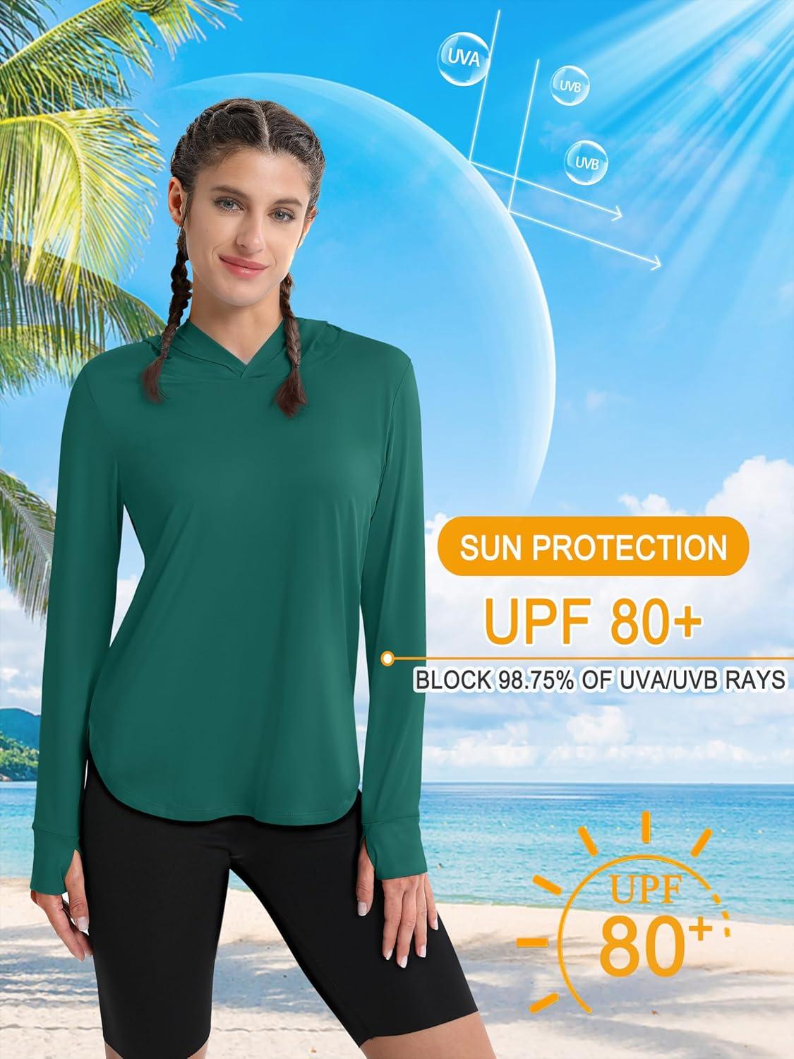MAGCOMSEN Women’s UPF 80+ Sun Protection Hoodie Long Sleeve Hiking Fishing Lightweight UV Rashguard with Thumb Hole(F Green)