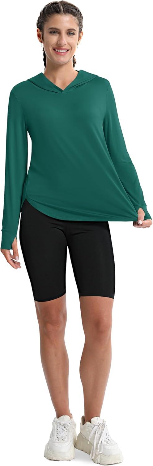 MAGCOMSEN Women’s UPF 80+ Sun Protection Hoodie Long Sleeve Hiking Fishing Lightweight UV Rashguard with Thumb Hole(E Green)