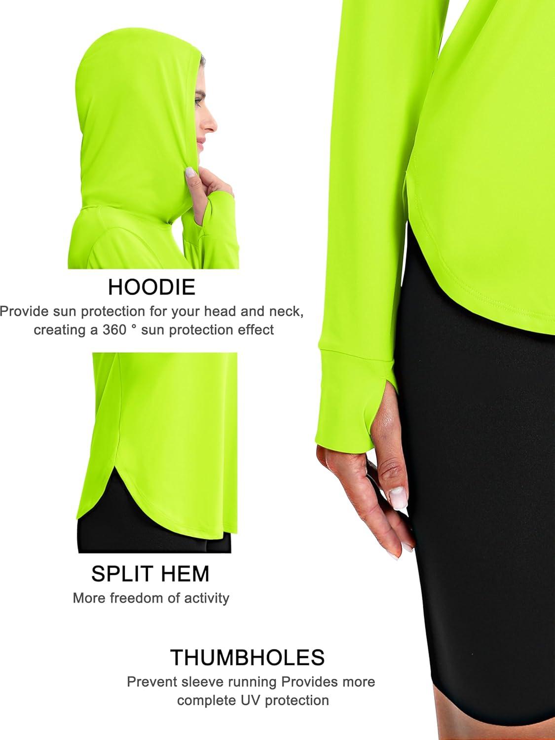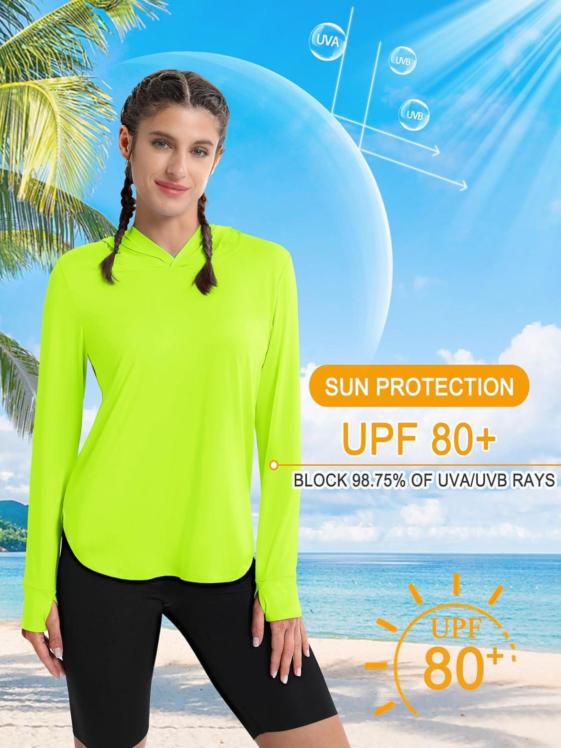 MAGCOMSEN Women’s UPF 80+ Sun Protection Hoodie Long Sleeve Hiking Fishing Lightweight UV Rashguard with Thumb Hole(E Green)