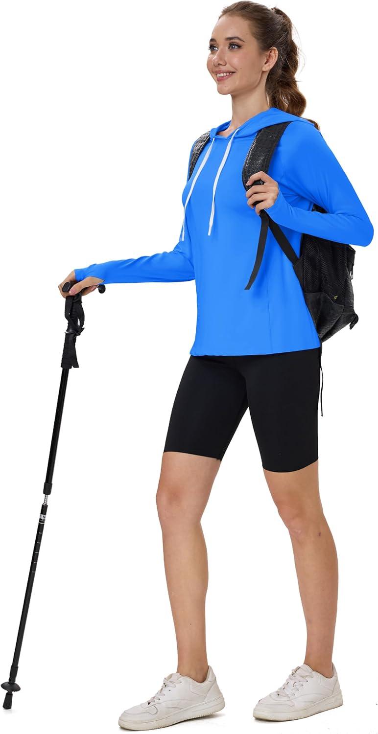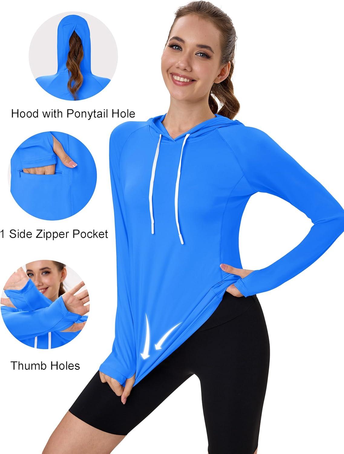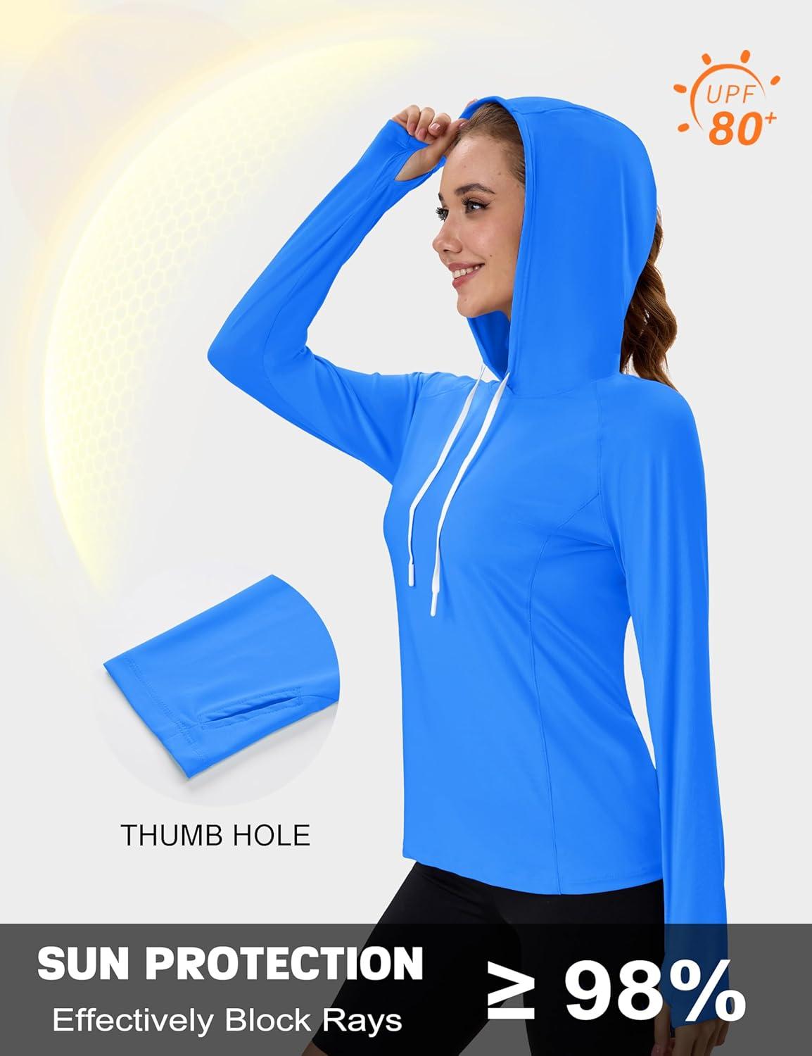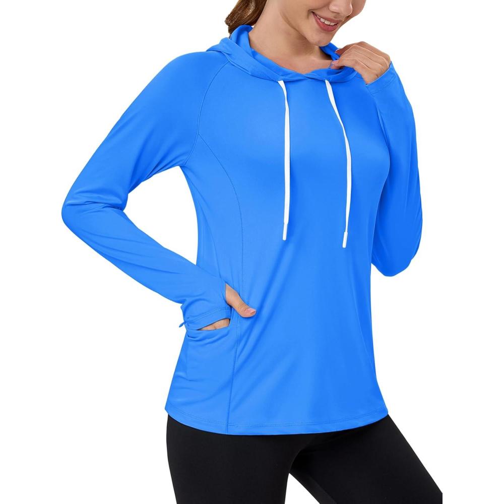 MAGCOMSEN Women’s UPF 80+ Sun Protection Hoodie Shirt Long Sleeve Outdoor Hiking Fishing Rash Guard with Pocket(Azure)