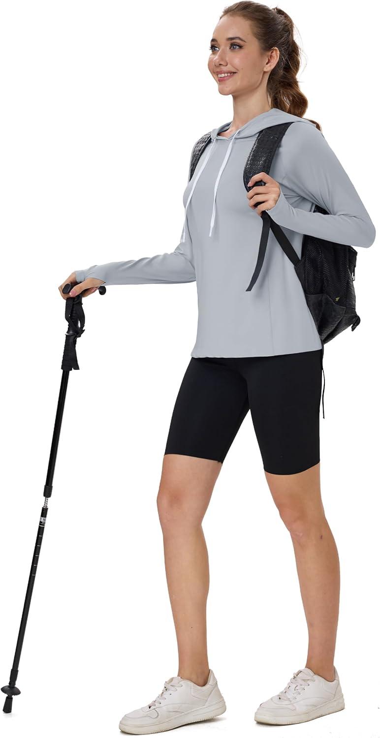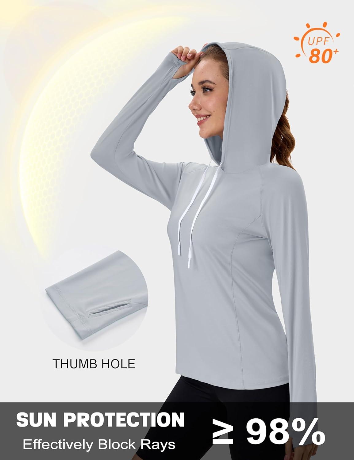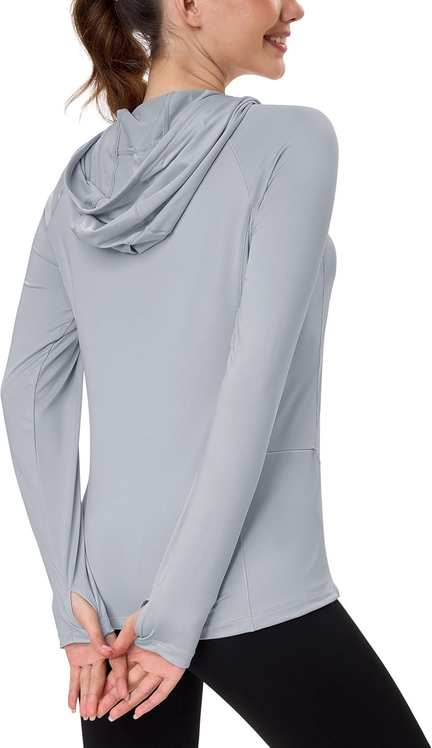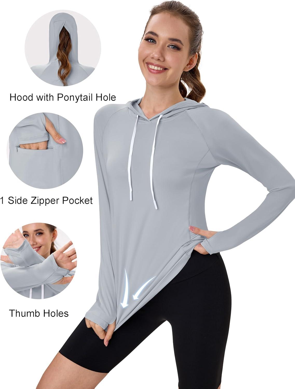 MAGCOMSEN Women’s UPF 80+ Sun Protection Hoodie Shirt Long Sleeve Outdoor Hiking Fishing Rash Guard with Pocket(Brightgray)