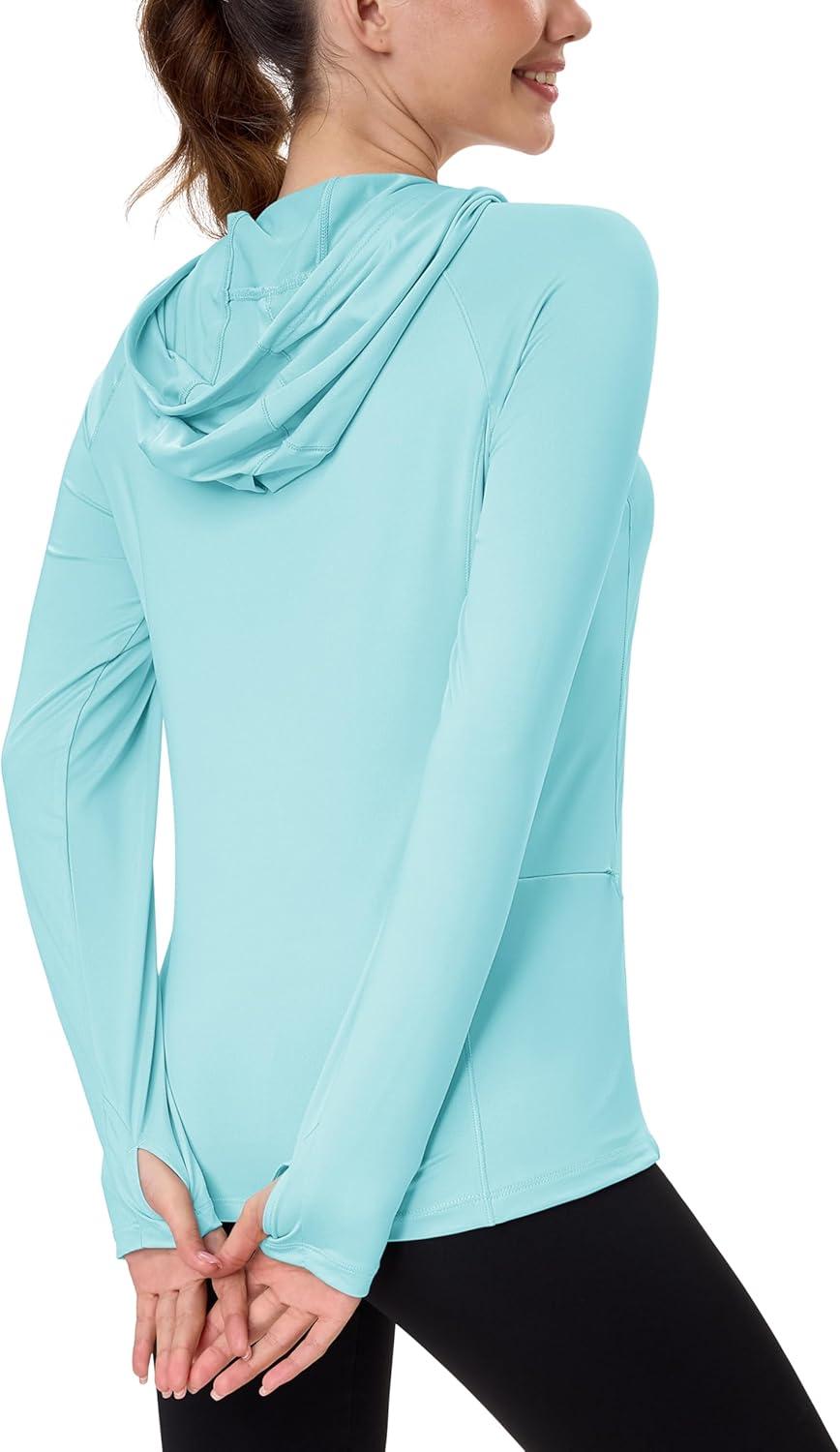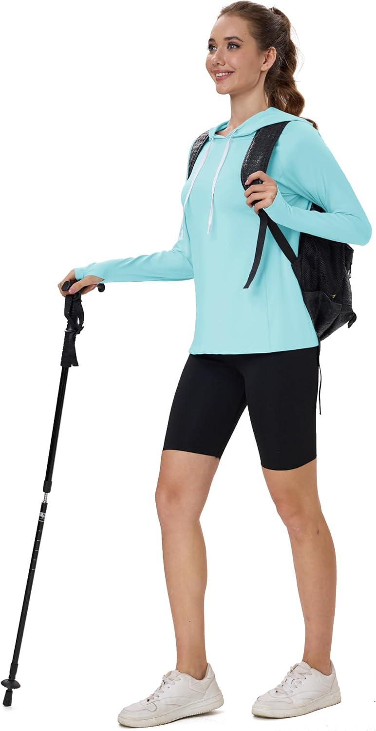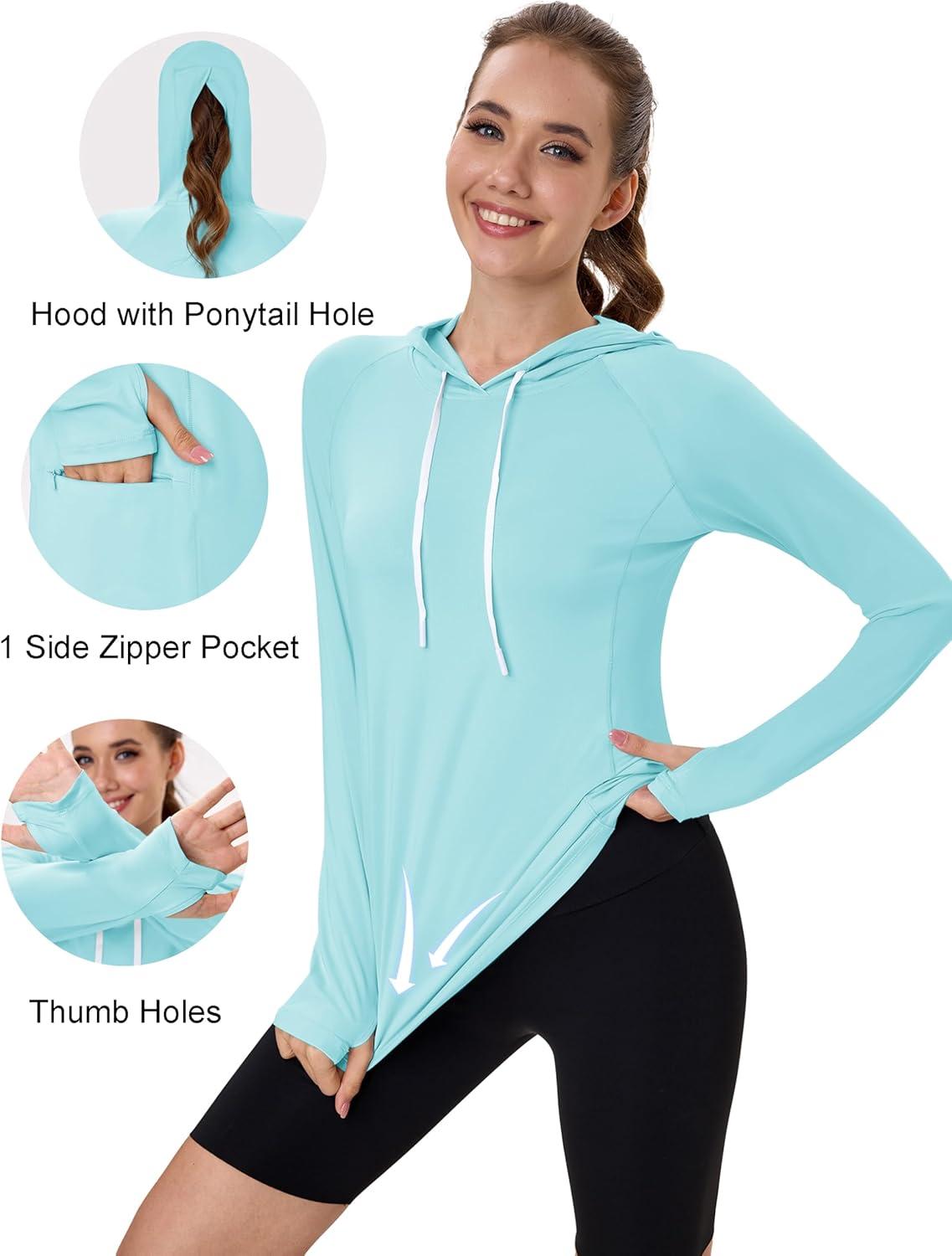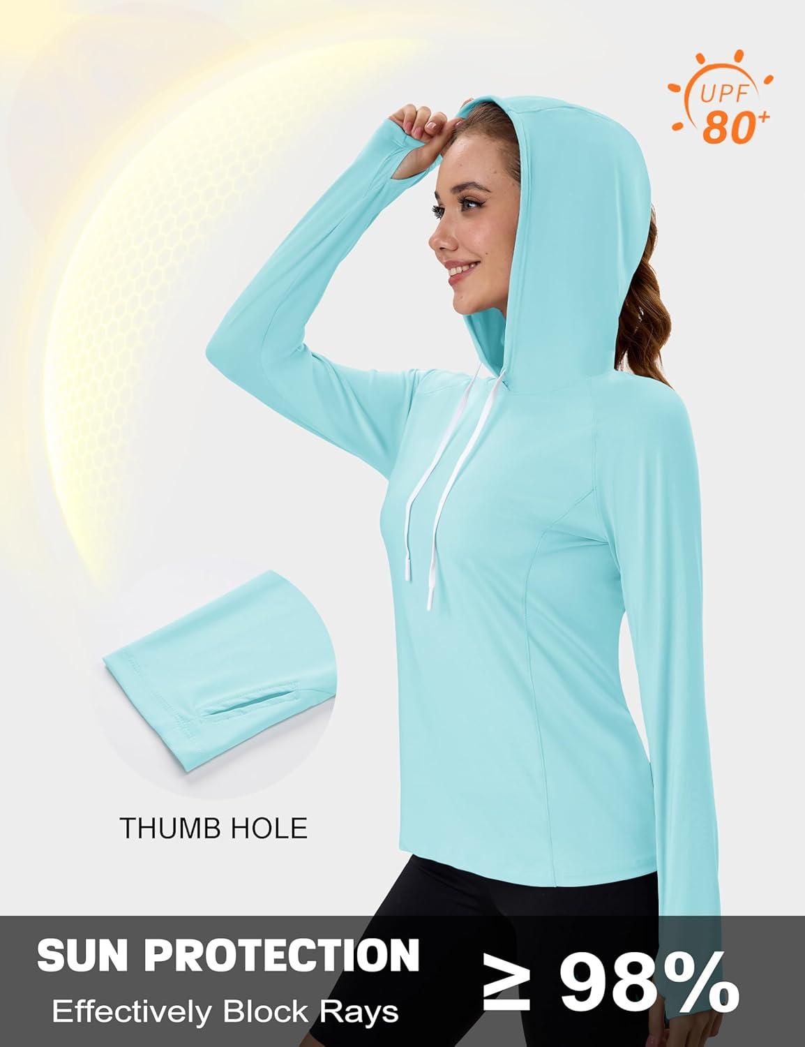 MAGCOMSEN Women’s UPF 80+ Sun Protection Hoodie Shirt Long Sleeve Outdoor Hiking Fishing Rash Guard with Pocket(Light Lake Blue)