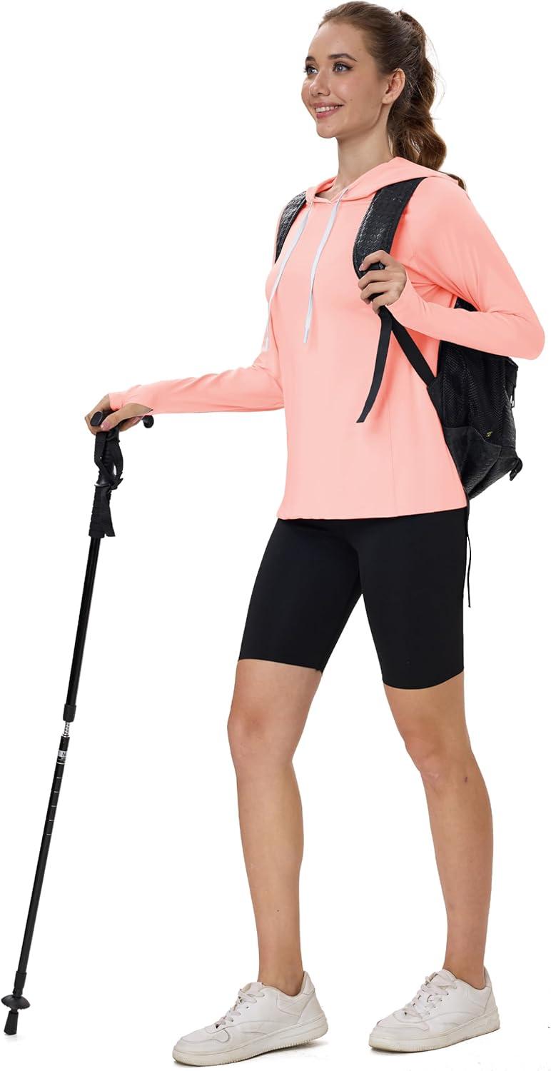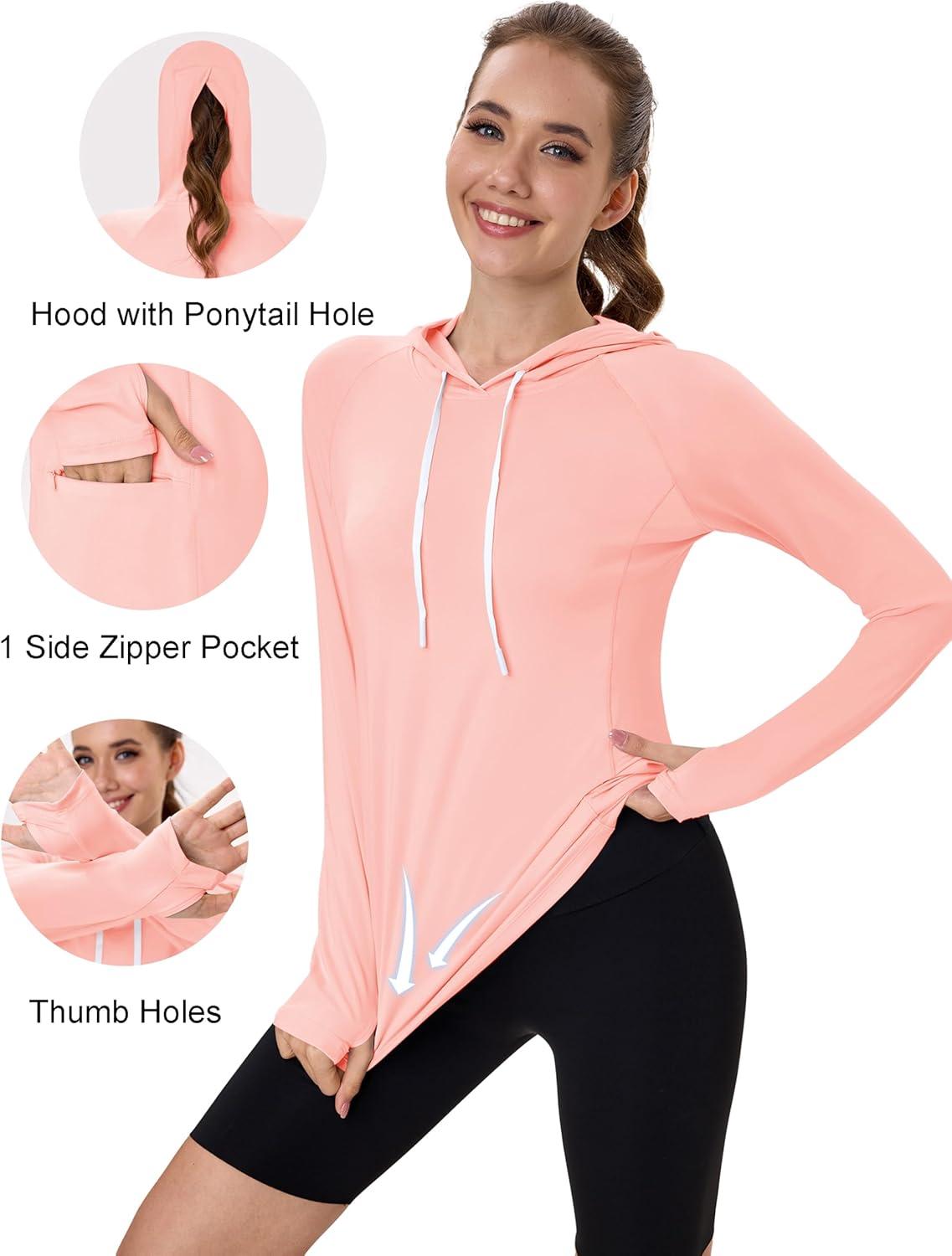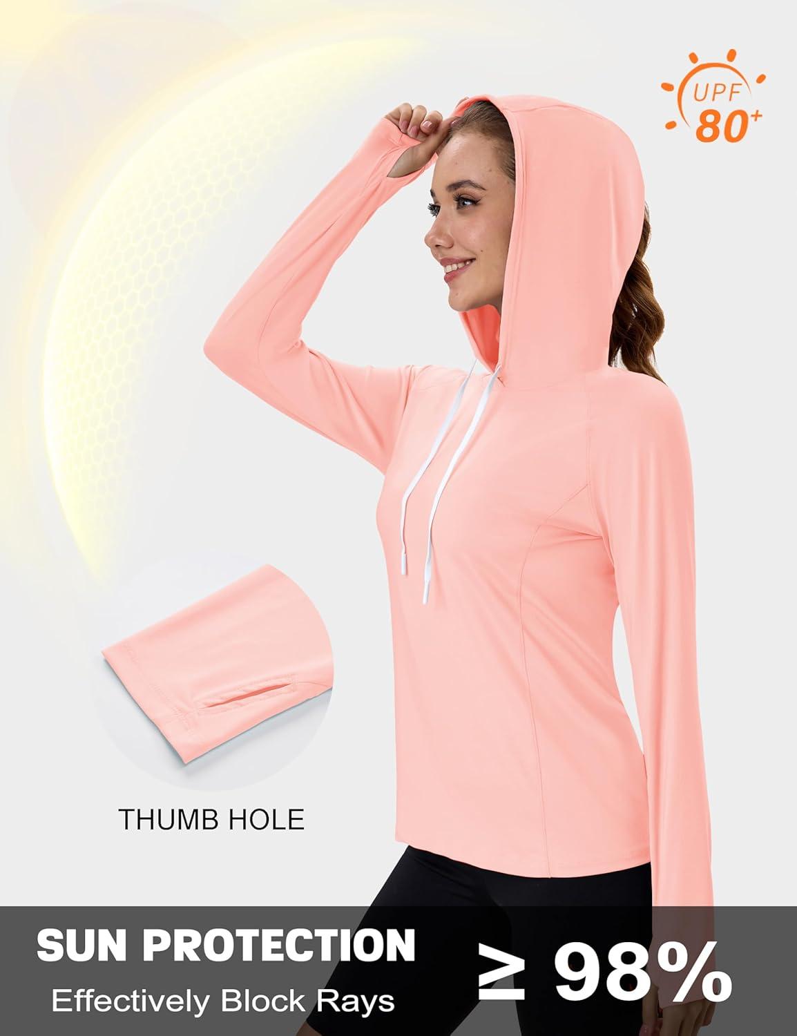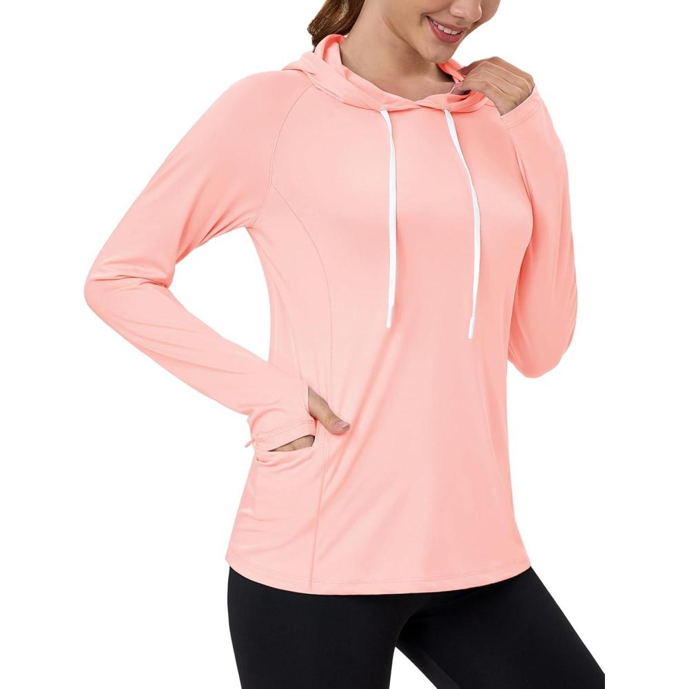 MAGCOMSEN Women’s UPF 80+ Sun Protection Hoodie Shirt Long Sleeve Outdoor Hiking Fishing Rash Guard with Pocket(Lightpink)