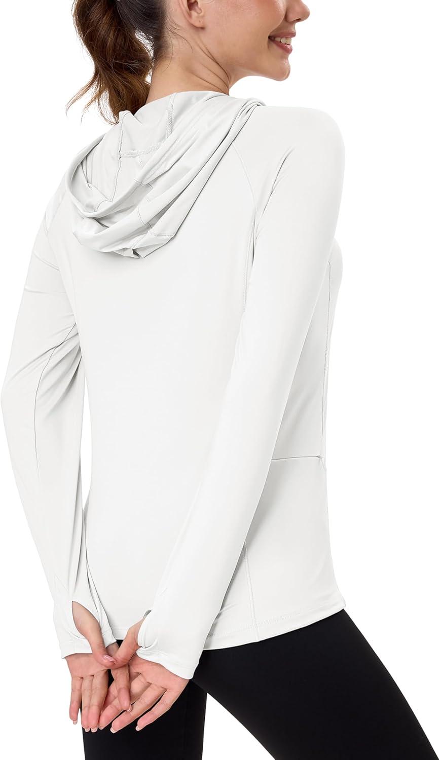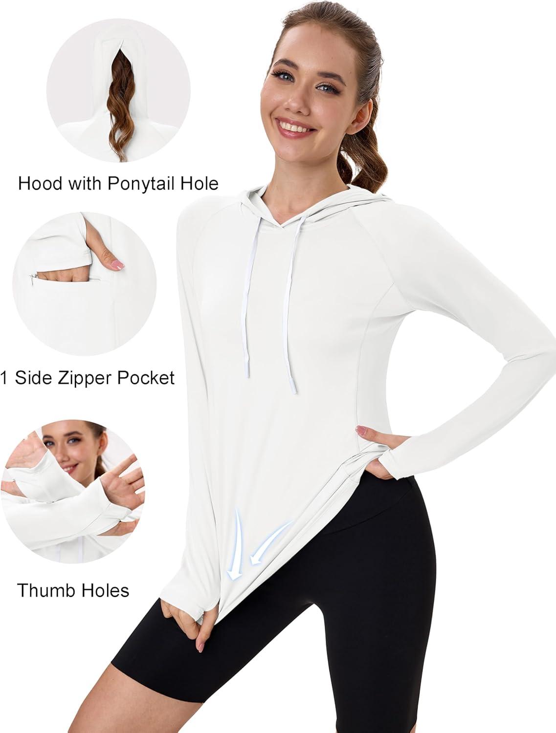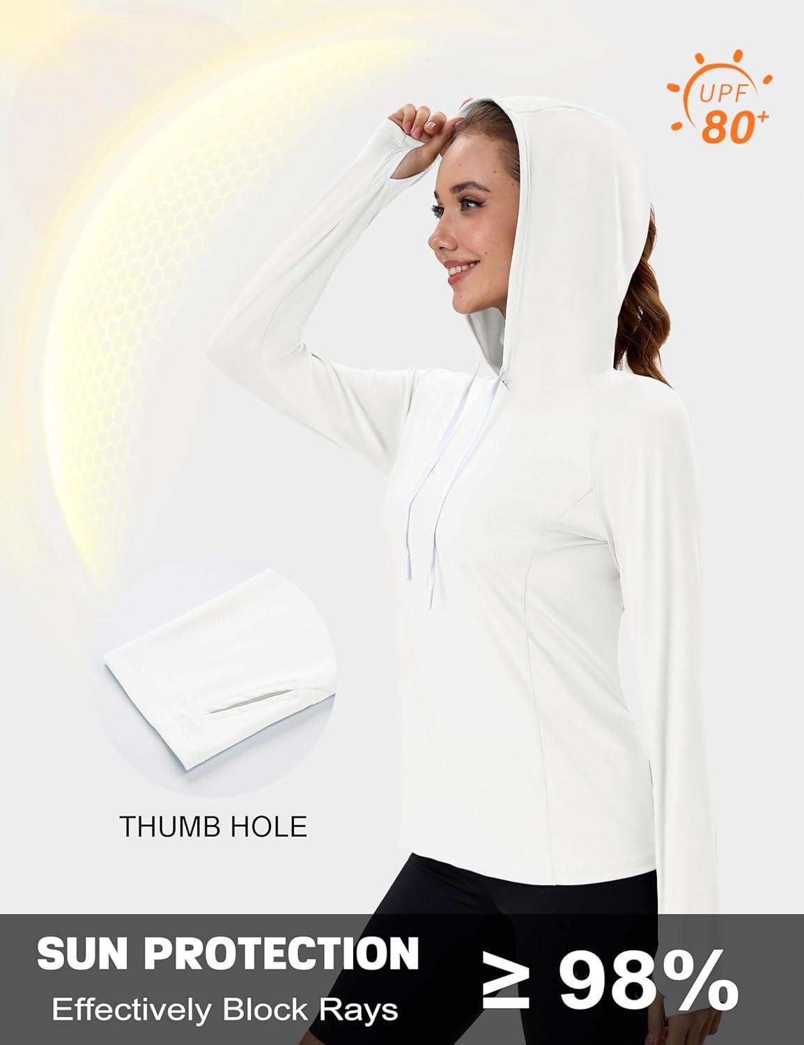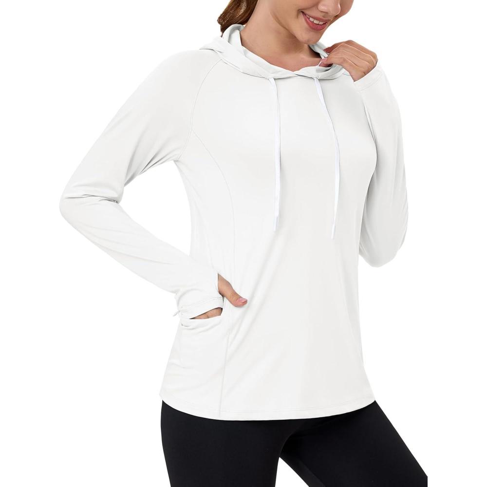 MAGCOMSEN Women’s UPF 80+ Sun Protection Hoodie Shirt Long Sleeve Outdoor Hiking Fishing Rash Guard with Pocket(White)