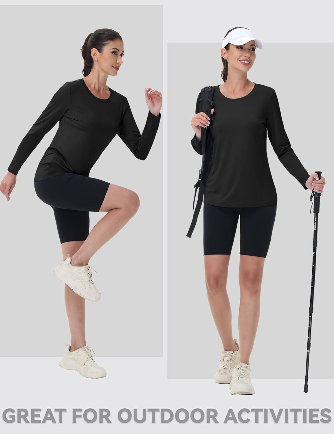 MAGCOMSEN Women’s UPF 80+ Workout Shirts Long Sleeve Atheltic T-Shirt Quick Dry Rash Guard Swim Tops(Black)