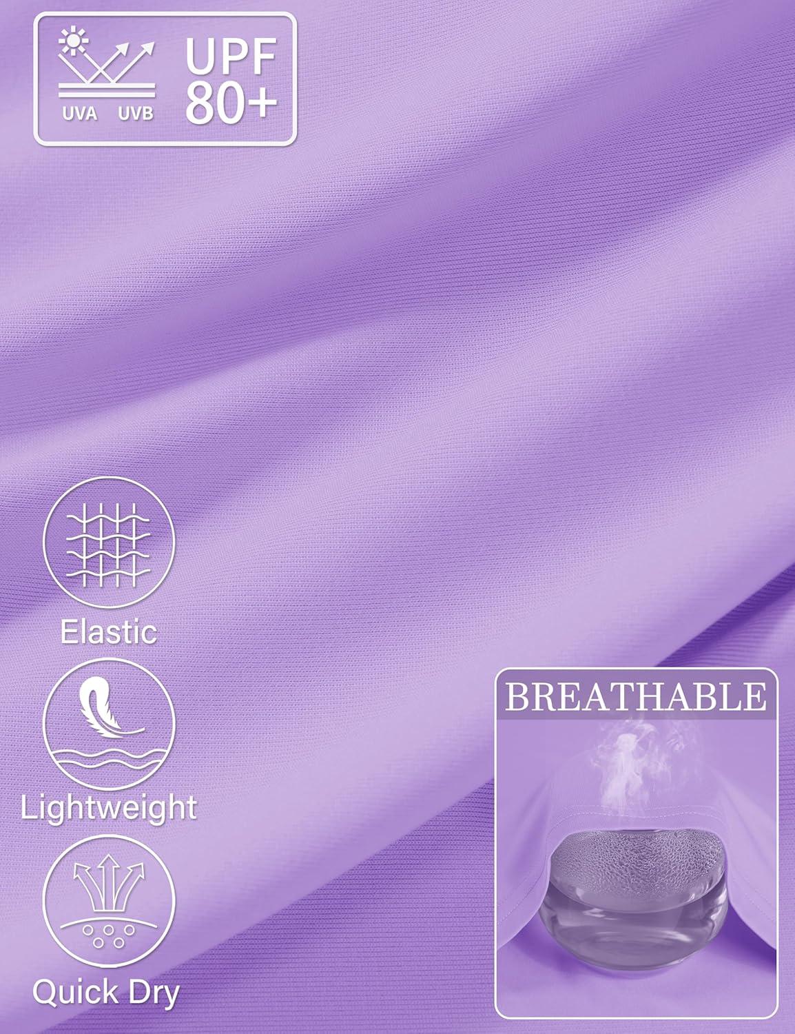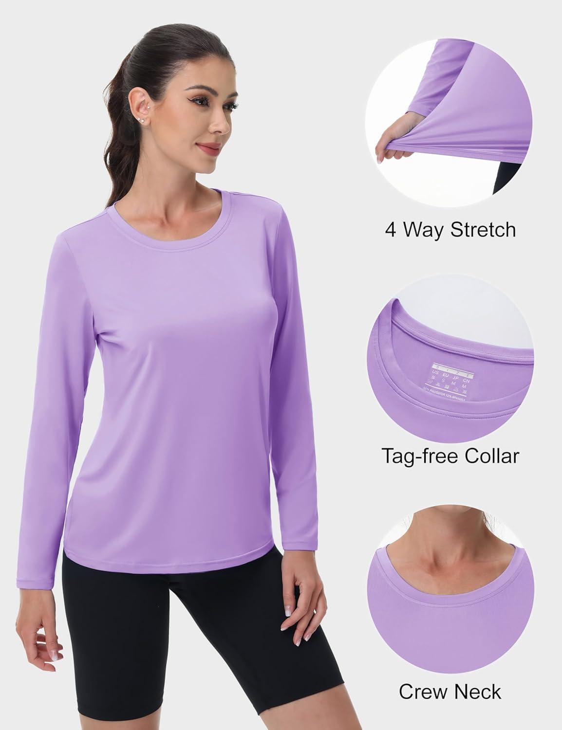 MAGCOMSEN Women’s UPF 80+ Workout Shirts Long Sleeve Atheltic T-Shirt Quick Dry Rash Guard Swim Tops(Light Purple)