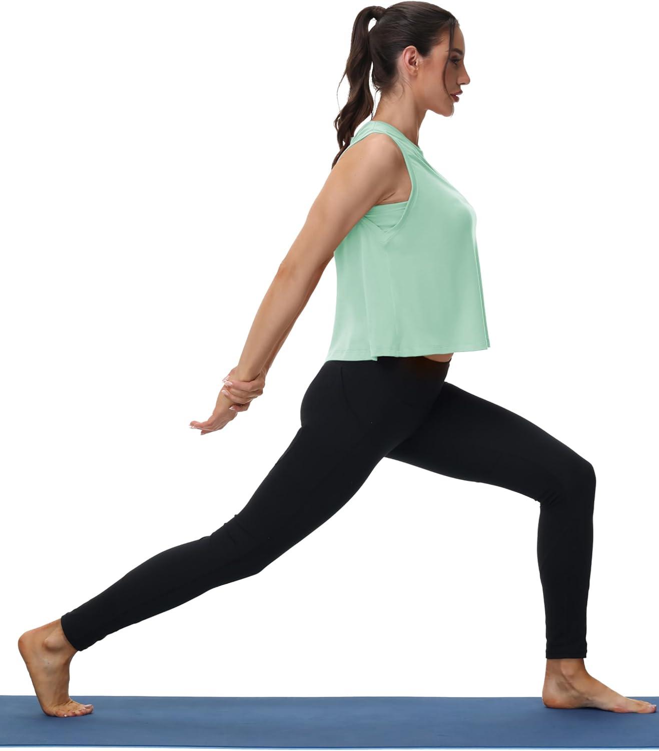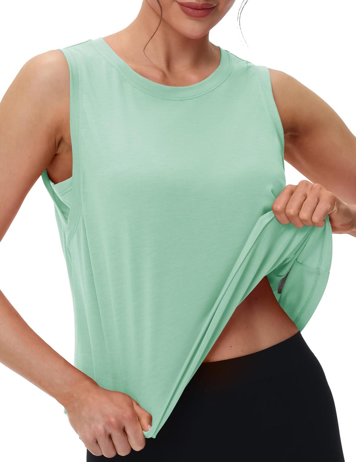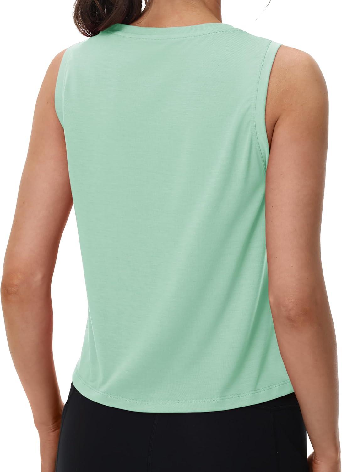 MAGCOMSEN Women’s Workout Tank Tops Crop Sleeveless Athletic Moisture Wicking Loose Fit Summer Shirt(Greygreen)