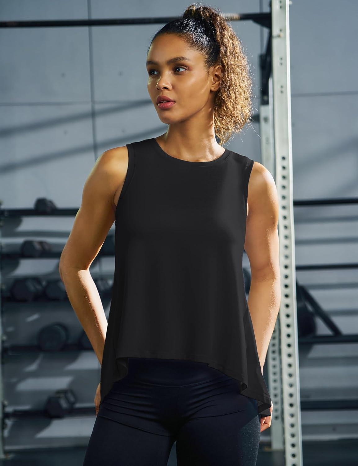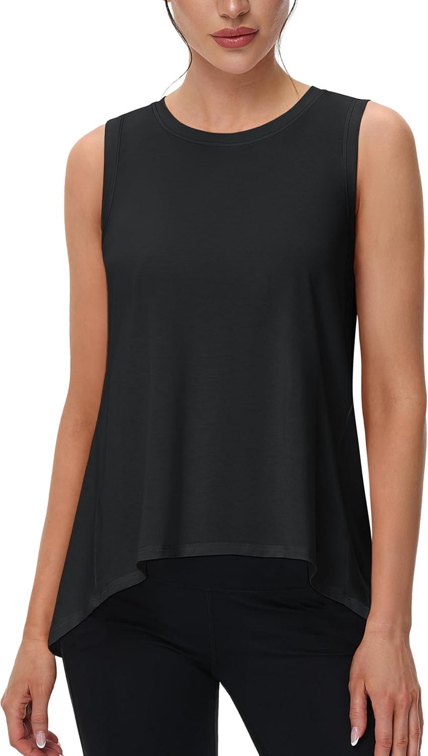 MAGCOMSEN Women’s Workout Tank Tops Loose Fit Gym Yoga Sleeveless Shirts Athletic Running Tops Flowy(Black)