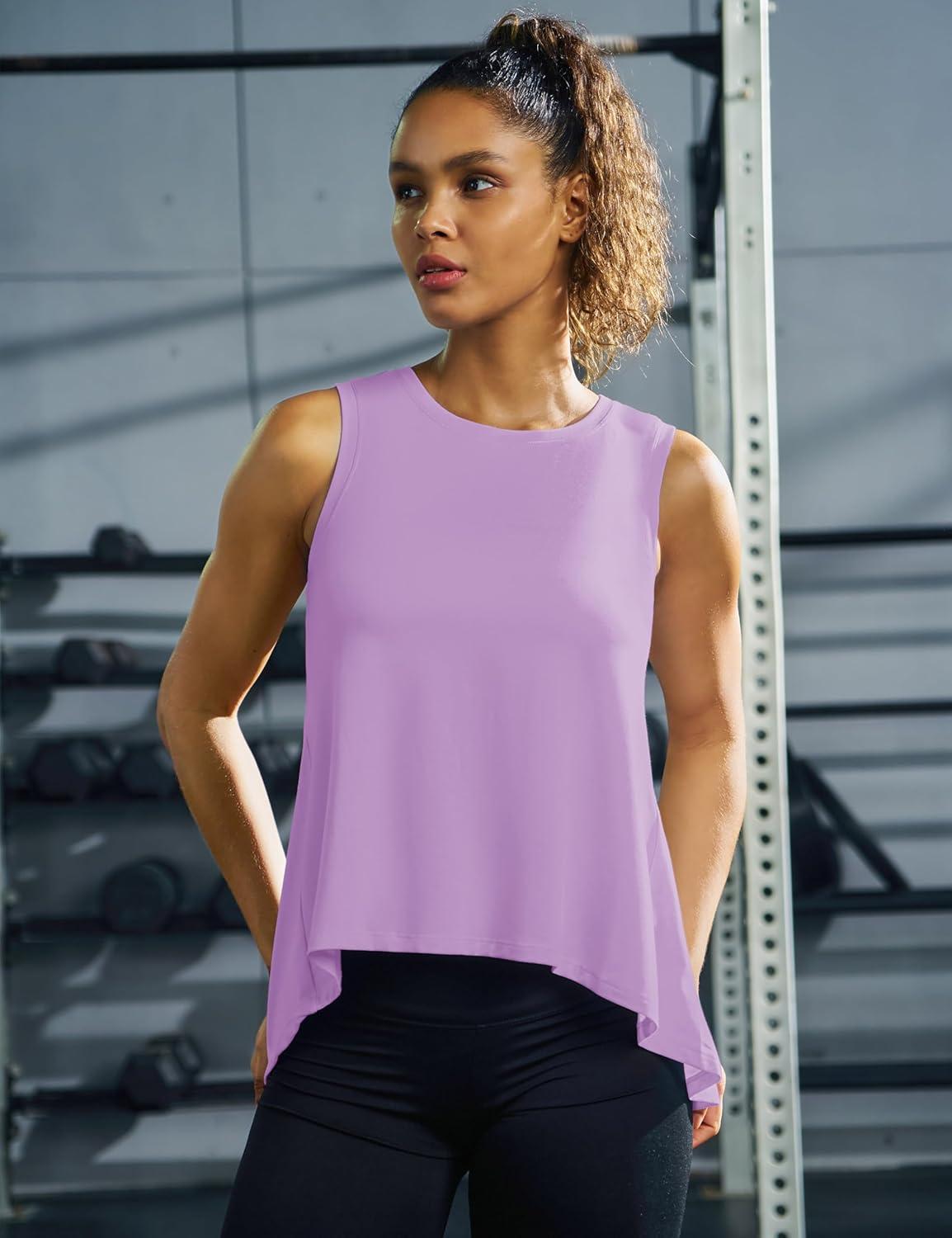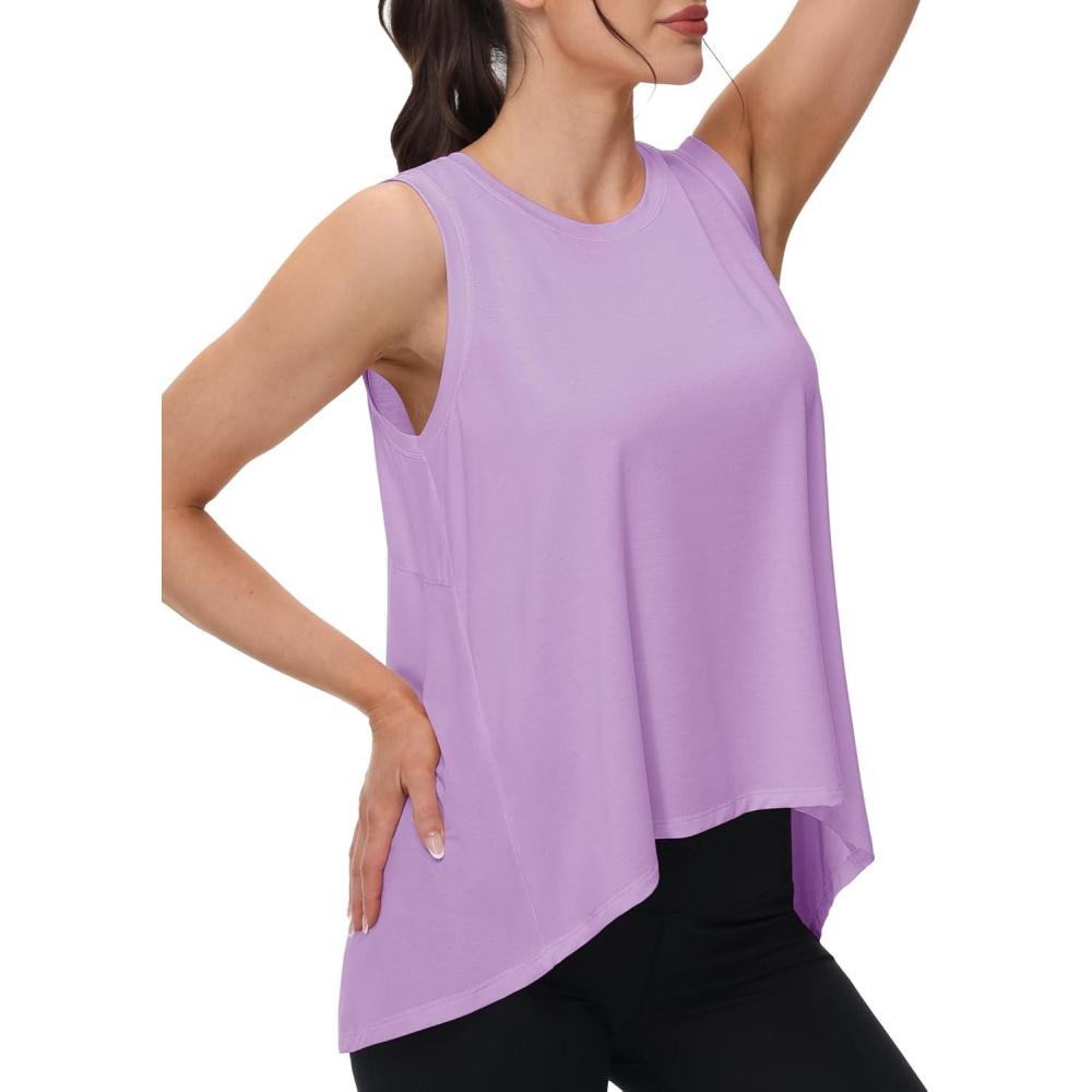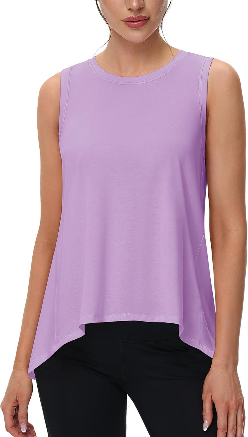 MAGCOMSEN Women’s Workout Tank Tops Loose Fit Gym Yoga Sleeveless Shirts Athletic Running Tops Flowy(Lightpurple)