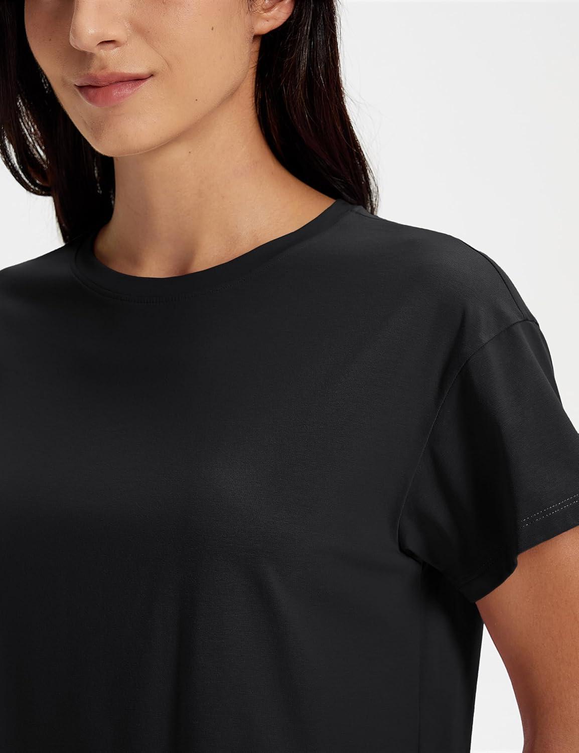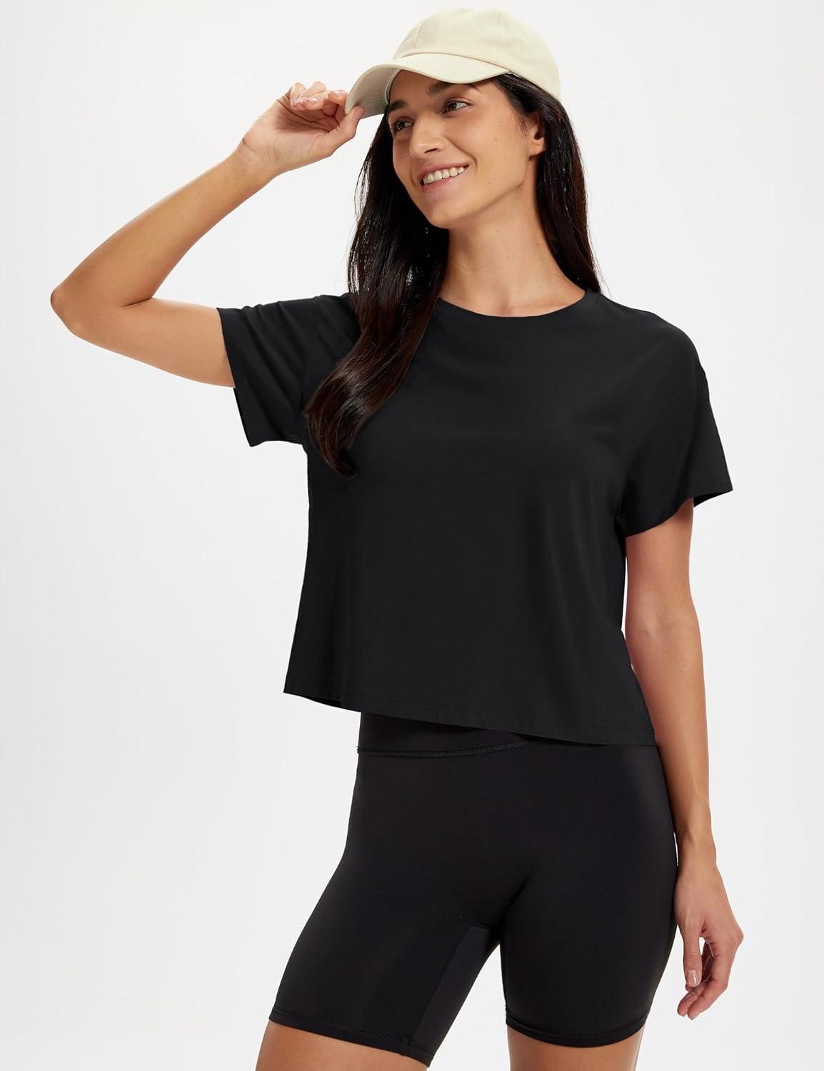 MAGCOMSEN Workout Crop Tops for Women Short Sleeve Cotton Athletic Yoga Tops Loose Casual Cropped T Shirts(Black)