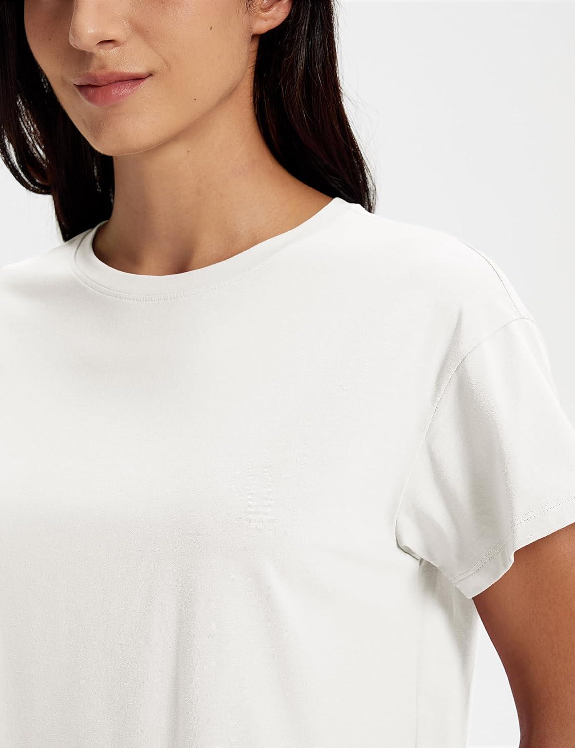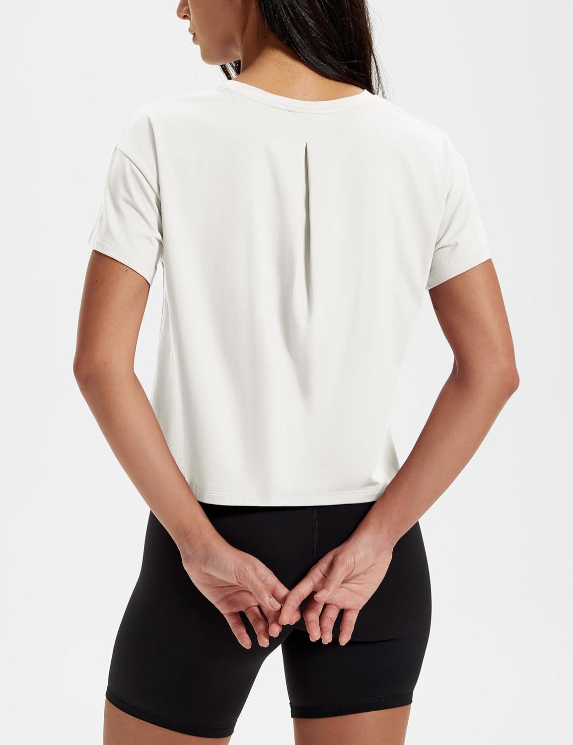 MAGCOMSEN Workout Crop Tops for Women Short Sleeve Cotton Athletic Yoga Tops Loose Casual Cropped T Shirts(White)